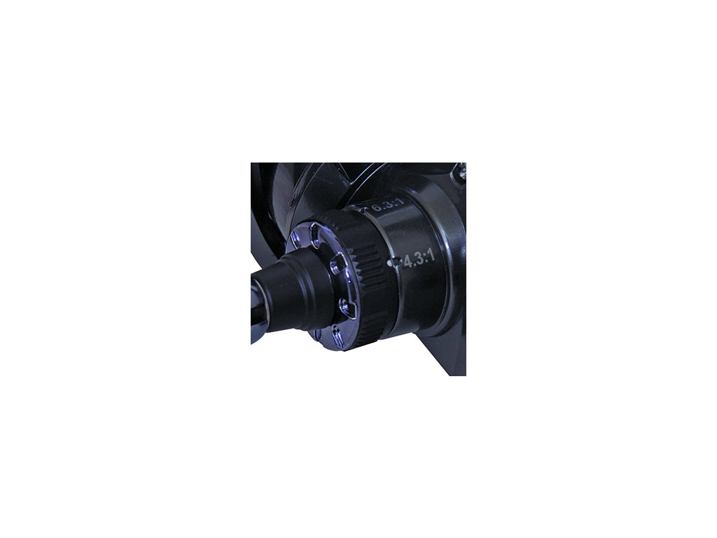 <p>Dvourychlostní naviják. Rychlejší převod lze použít na stahování při zavážení nebo dlouhých odhozech. Pomalejší a tím i silnější převod lze použít při zdolávání ryby. <br />Při vláčení lze dvě rychlosti použít při různých způsobech vláčení. Některé nástrahy je nutné vláčet rychleji, jiné pomaleji. Při zdolávání opět lze použít pomalejší a tedy i silnější převod.<br />- Planetový dvourychlostní převod s ručním přepínáním<br />- 6+1 nerezových ložisek<br />- ISS (Instant Stop System) eliminující zpětný prokluz rotoru<br />- Multidisková přední brzda<br />- hliníková cívka<br />- náhradní plastová cívka</p>Doplňkové parametry