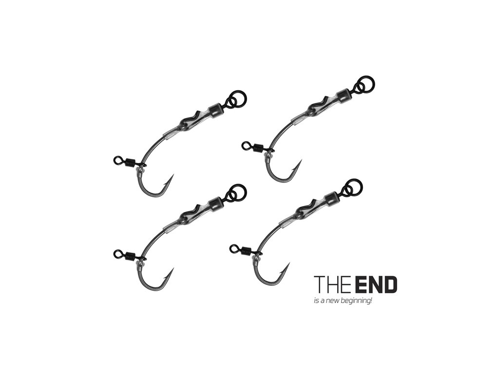 Hotová montáž THE END Ronnie Rig je určena pro lov kaprů na plovoucí nástrahy těsně u dna. Skládá se z prvotřídních komponentů THE END. Montáž je sestavena z háčku, rychloobratlíku s kroužkem, obratlíku Ronnie a gumového stoperu Ronnie a smršťovací bužírky. Je to efektivní montáž při lovu na pop-up boilies nebo jiné plovoucí nástrahy, s možností využití na všech typech stojatých vod. V nabídce je několik velikostí.Doplňkové parametry