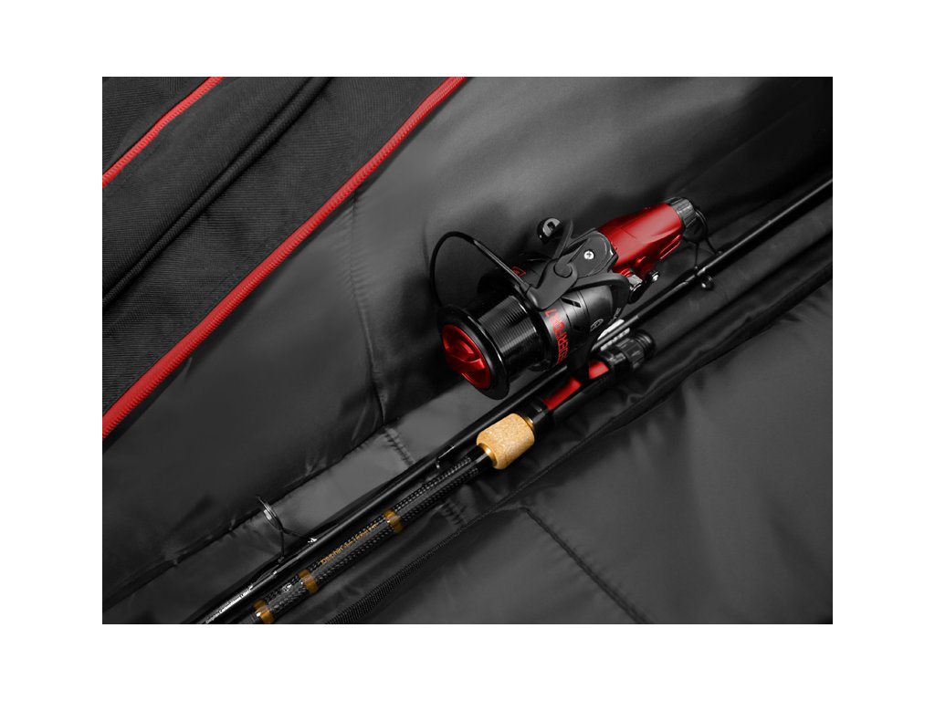 Do detailů propracované tříkomorové pouzdro z dílny firmy Delphin, které splní požadavky i náročných příznivců lovu feederovou technikou. Je designované v typické bordovo-černé kombinaci charakteristické pro feederové produkty ze série ATOMA. Boční a spodní stěny pouzdra jsou důkladně polstrované, což zaručuje transport bez obavy o vaše pruty. Každá komora má zvláštní zipovatelný vstup, díky čemuž jsou pruty od sebe odděleny a excelentně chráněny před poškozením. V každé jedné komoře se nacházejí také polstrované kapsy pro uložení prutů, které je navíc možné dokonale zafixovat páskami se suchým zipem. Takto uložené a fixované pruty najdete po transportu vždy na svém místě. Výhoda pouzdra ATOMA spočívá také v tom, že se do něj vkládají pruty s navijáky orientovanými směrem nahoru. Hlavní deviza takového systému spočívá v tom, že nedochází při položení pouzdra na zem k přímému kontaktu navijáků se zemí. Tím pádem jsou lépe chráněny a je minimalizována šance jejich poškození. Po bocích se nacházejí dvě kapsy se zipem. Jedna z nich je extra dlouhá a je možné do ní uložit například podběrákovou tyč, vidličky, či různé feederové držáky prutů a ramena. Z vnější strany je navíc na ní našitá kapsa a stahovací popruh, díky kterému můžete přenášet například další prut, případně vidličky a jiné příslušenství. Na druhé straně pouzdra se nachází menší zipovatelná kapsa, která je ideální na tubus s feederovými špičkami. Pouzdro je šité z velmi odolné a pevné textilie, která zamezuje předčasnému opotřebení a znehodnocení. Vínové části jsou zase z nepromokavé, kvalitní látky, díky které se nemusíte obávat ani menšího deště. Delphin ATOMA disponuje délkově nastavitelným ramenním popruhem s vyztuženou částí, ale také rukojeťmi, usnadňujícími transport. Spolu s kvalitními zipy s běžcem, zajímavým designem a detailním zpracováním je toto pouzdro nejen velmi efektní, ale i vysoce praktické. Technické parametry: Model: Puzdro Delphin ATOMA Triple 360-3 Vnější délka pouzdra: 132 cm Délka boční kapsy: 110 cm Délka kapsy na špičky: 66cm Pro pruty: 360cm / 3 díly Model: Puzdro Delphin ATOMA Triple 390-3 Vnější délka pouzdra: 147 cm Délka boční kapsy: 110 cm Délka kapsy na špičky: 66cm Pro pruty: 390cm / 3 díly, 400cm / 3 dílyDoplňkové parametry