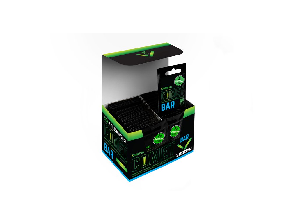 Chemické světlo Comet BAR je vynikajícím pomocníkem při večerním a nočním lovu. Díky tvaru tyčinky ho lze vložit do různých indikátorů záběru a pomocí gumové trubičky, která se nachází v balení, ho zase snadno upevníte například na plovák. Manipulace s tímto světlem je velmi jednoduchá. Zlomením žluté části uvnitř dojde k chemické reakci, která způsobí svícení této tyčinky. Pro rovnoměrné svícení doporučujeme po zlomení tyčinkou párkrát zatřást. Světlo je dostupné ve dvou velikostech. Díky pokrokové technologii je doba svícení až 8 hodin!Doplňkové parametry
