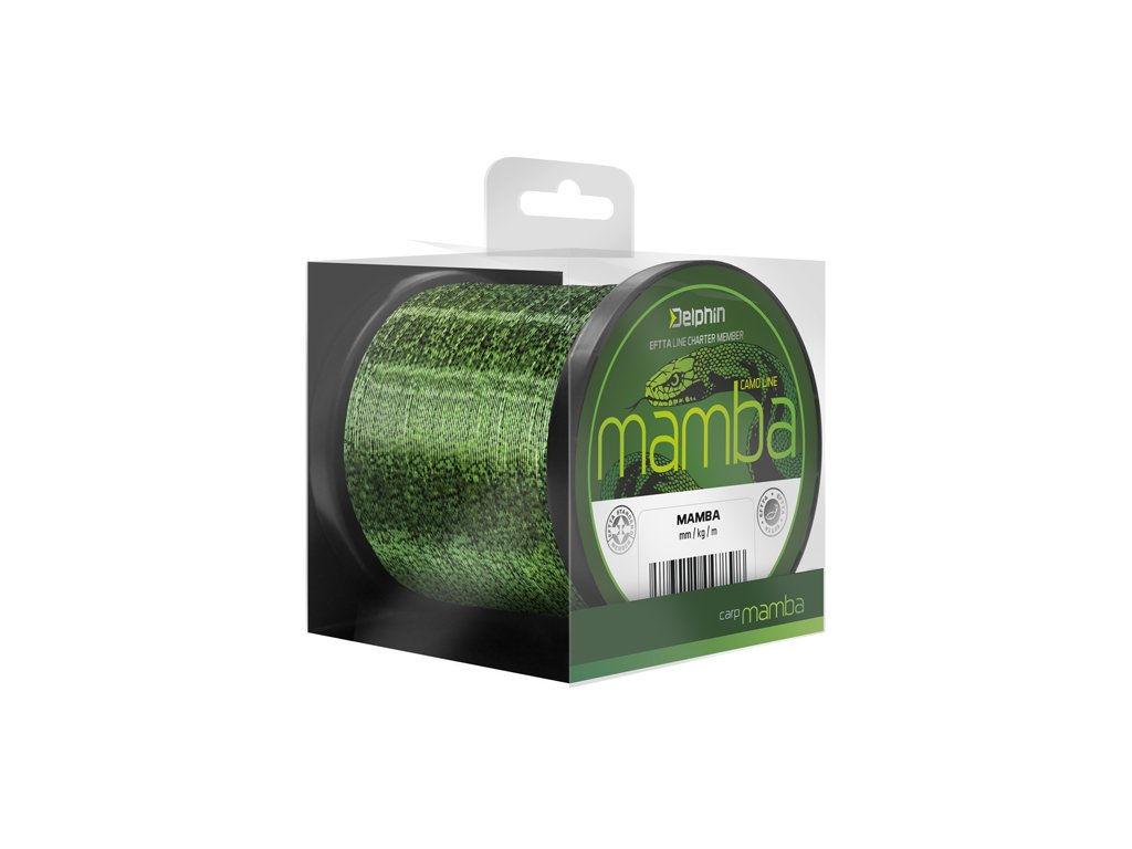 Excelentní kaprařský vlasec s unikátním 3D vzorem. MAMBA disponuje vynikajícími vlastnostmi jako pevnost a nosnost v uzlu. Díky svému jedinečnému kamuflážovému provedení rychle splyne s okolním prostředím. Jeho pevnost a odolnost vůči oděru ho předurčují k použití i do náročných podmínek a jeho mimořádně hladký a jemný povrch umožňuje využití při dalekém nahazování. Díky těmto vlastnostem je Delphin MAMBA považován za univerzální kaprařský vlasec, který splňuje ty nejnáročnější požadavky, a na který se můžete spolehnout v každé situaci. MM/LBS: 0.26mm/11.4lbs, 0.28mm/13.4lbs, 0.30mm/15.5lbs, 0.32mm/16.3lbs, 0.34mm/17.8lbsDoplňkové parametry