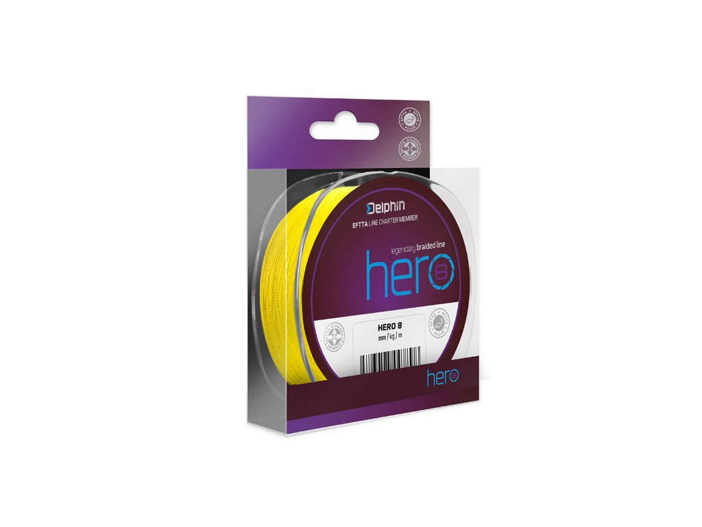 Delphin HERO 8 je spolehlivá šňůra, pletená z 8 PE mikrovláken. Systematickým pletením vláken je dosažena výborná nosnost šňůry, téměř nulová průtažnost a mnohem jemnější povrch oproti 4 vláknovým šňůrám. Záběr se tak okamžitě přenáší z nástrahy do rybářského prutu, což umožní reagovat mnohem rychleji než při vlasci. Navíc díky hladšímu povrchu je mnohem šetrnější k očkům prutu než 4 vláknové šňůry. HERO 8 je povrchově upravena, čímž je eliminována její nasákavost. Díky široké škále nabízených průměrů a nosností, je Delphin HERO 8 velmi vhodná pro použití na většinu rybolovných technik!Doplňkové parametry