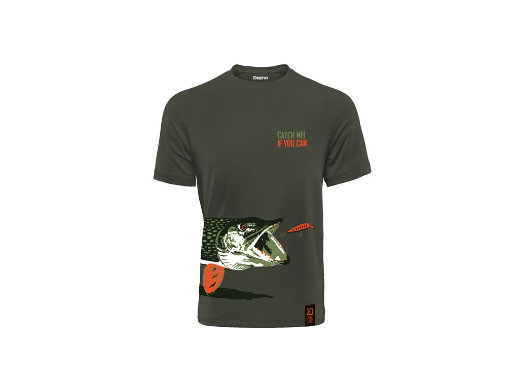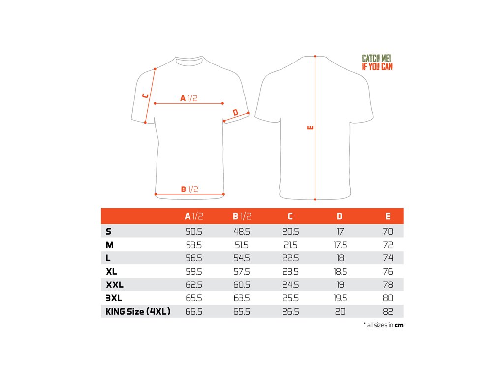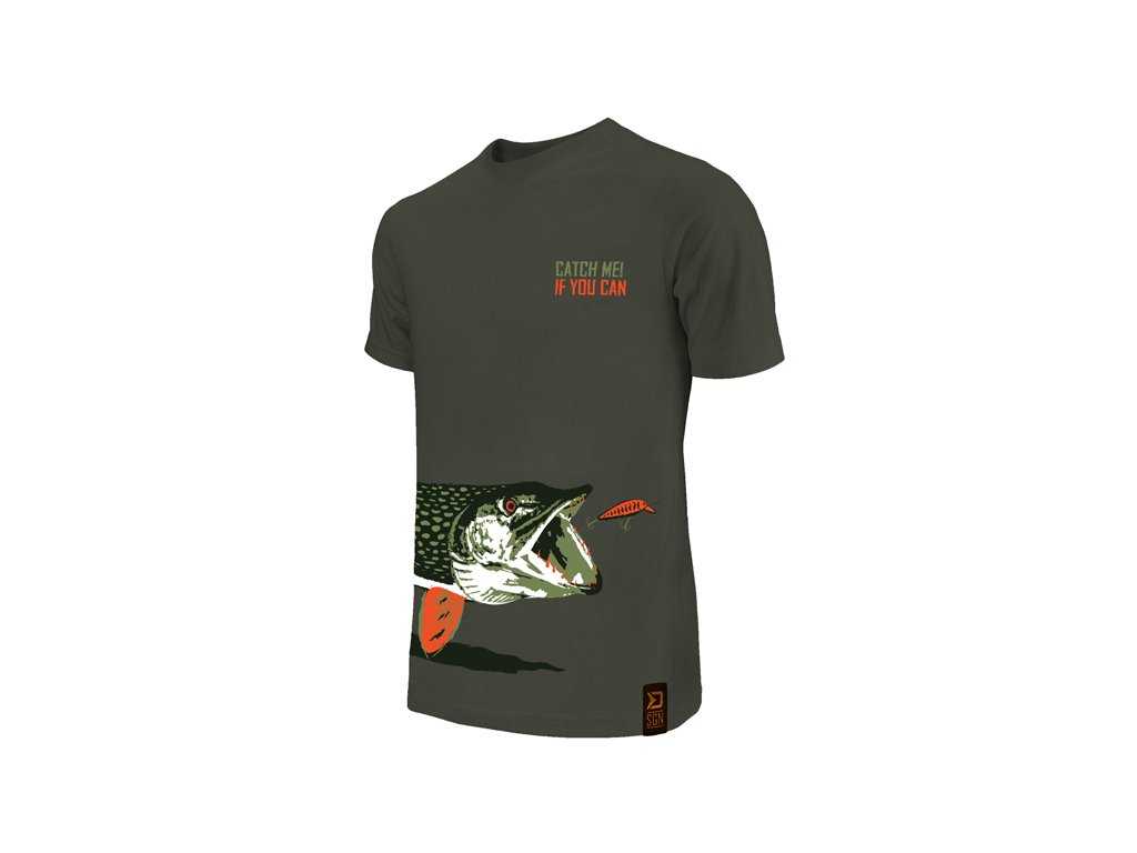 Série stylových a pohodlných triček s vyobrazením ryb, vhodných nejen na ryby, ale také k běžnému nošení. CATCH ME IF YOU CAN (Chyť mě, pokud to dokážeš) se nepochybně stane jedinečným kouskem každého rybářského šatníku, díky kterému se u vody odlišíte. Triko Catch me! Štika je designována v tmavě zelené barvě s vyobrazením štiky, která se právě blíží k nástraze, což je moment, na který čekají všichni příznivci lovu těchto ryb. Samotné tričko je vysoké kvality, stejně jako použitý barevný tisk. Nabízíme je v široké škále velikostí od S až po KING SIZE (ekvivalent 4+XL, který je ve většině zemí označován jako XXXXXL). Model King size tedy hravě oblékne i ty nejstatnější rybáře o hmotnosti 135 kg+. Složení: 100% bavlnaDoplňkové parametry