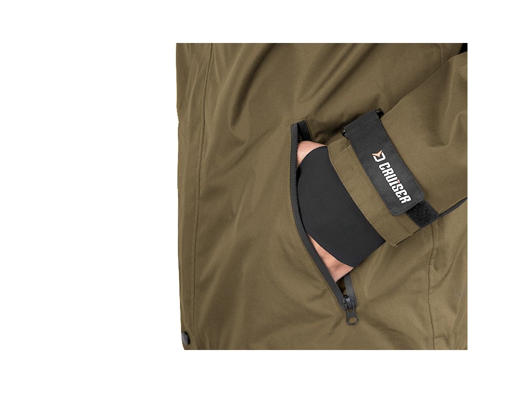 Vrchní oblečení nabízející excelentní ochranu vůči nepříznivým podmínkám, a to zejména dešti a větru. Delphin CruiserCros 5T je svými parametry vhodný zejména pro přechodné období jara a podzimu, kdy je počasí často nevyzpytatelné. Komplet CruiserCROS se skládá ze samostatně prodávané bundy a kalhot, což vám dává možnost nakombinovat si správnou velikost každého dílu. Voděodolný materiál použitý na vnější vrstvu bundy i kalhot se vyznačuje vodním sloupcem 5000mm, kompletně podlepenými švy a odolností vůči větru. Tyto parametry zaručují komfort a ochranu během vašich rybářských výprav, běžného nošení či jiného pobytu v přírodě. BUNDA Vnitřní strana bundy je opatřena síťovinovou látkou, která zamezuje dotyku kůže s vnějším materiálem. Kromě toho je na dotek velmi příjemná, čímž zvyšuje pohodlí během nošení. Na límci se nachází jemný fleece, díky čemuž nehrozí nepříjemný dotek na krku či škrábání. Uvnitř je i velmi praktická zipovatelná kapsa, vhodná například na doklady, či jiné cennosti. Dvě kapsy se nacházejí i na vnější straně bundy, přičemž disponují voděodolnými zipy, díky čemuž nehrozí zatečení vody dovnitř. Bundu lze zapnout pomocí odolného zipu, který je z vnější strany překryt lemem, čímž je chráněn před vodou a větrem. Pás bundy disponuje stahovatelnými gumičkami, které podstatně přispívají k udržení tepla uvnitř a minimalizují možnost podfouknutí. Samozřejmostí na bundě je kapuce, stahovatelná dvěma gumičkami. Kapuci je navíc možné odepnout pomocí zipu a bundu tak využívat i bez ní. Rukávy bundy jsou na zápěstí vybaveny stahovatelnými pásky se suchým zipem ale i integrovaným ochranným rukávem na dlaň, přes který lze prostrčit palec. KALHOTY Jednou z hlavních výhod kalhot je vyvýšený pas v oblasti křížů, čímž bude spodní část vašich zad dokonale chráněna. V oblasti hýždí a kolen se nachází zesílená černá látka, jejímž úkolem je ochrana před znehodnocením, těchto používáním nejvíce náchylných částí kalhot. Zároveň efektně přispívá k celkovému designu, který dotváří i stylové kšandy s logy značky Delphin. Ve spodní části kalhot se nachází zip a zároveň i stahovatelné pásky, umožňující přizpůsobit šířku v oblasti kotníku či zcela obepnout lem kolem obuvi. Dvě boční kapsy jsou opatřeny voděodolnými zipy, díky čemuž nehrozí zatečení vody dovnitř. Při praní doporučujeme použít speciální prací prostředek na funkční oblečení, prát při max. 30°C, neždímat, nežehlit a v případě potřeby použít impregnační přípravek, který obnoví vodoodpudivou úpravu vnějšího materiálu.Doplňkové parametry
