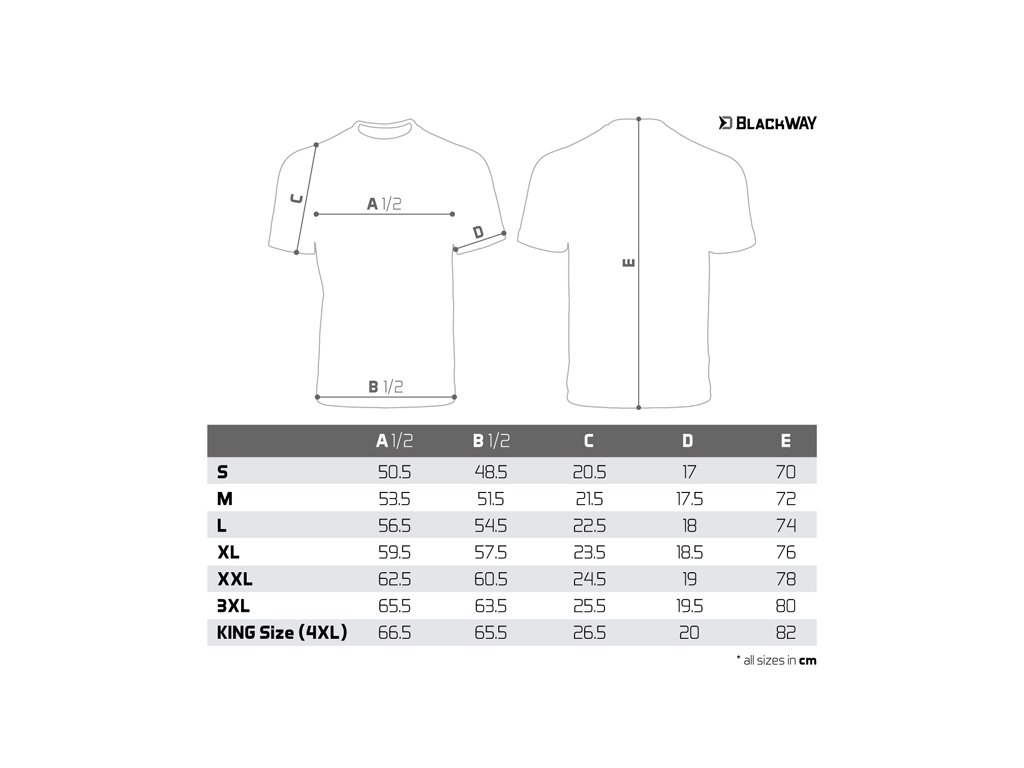 Originální černé triko BlackWay je stylovým kouskem oblečení z dílny značky Delphin. Díky decentnímu vzhledu je vhodné pro každodenní nošení, zároveň však umožňuje prezentovat vaši rybářskou duši. Triko je vyrobeno z kvalitního a příjemného materiálu, takže se v něm budete cítit maximálně komfortně. Vpředu vyniká logem Delphin, které je nevšedně vytvořeno nápisy BlackWAY. Samotné tričko je vysoké kvality, stejně jako použitý barevný tisk. Nabízíme je v široké škále velikostí od S až po KING SIZE (ekvivalent 4+XL, který je ve většině zemí označován jako XXXXXL). Model King size tedy hravě oblékne i ty nejstatnější rybáře o hmotnosti 135kg+. Složení: 100% bavlnaDoplňkové parametry