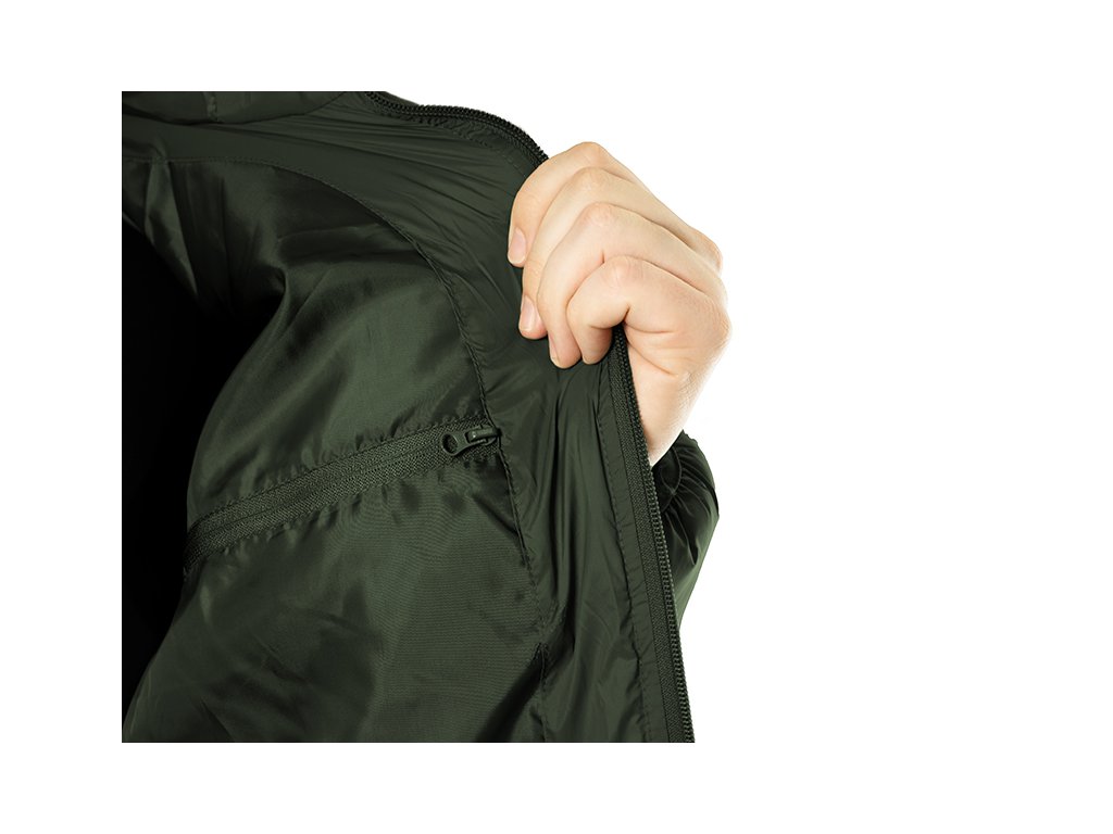 Pokud jste rybářem, kterého neodradí i to nejchladnější počasí, bunda Delphin Catch me WINTER CARP je kusem zimního outfitu, na který se můžete spolehnout. Silná termoizolační vrstva je zárukou ochrany vůči mrazu a větru, takže zůstanete v teple a budete se cítit vždy příjemně. Zároveň je bunda velmi pohodlná a příjemná k nošení, přičemž vám umožňuje volný pohyb potřebný pro vykonávání činností během lovu. Bunda je vyrobena z odolných materiálů a vyznačuje se kvalitním zpracováním. Na přední straně bundy se nacházejí dvě kapsy opatřené kvalitními zipy v tmavě zelené barvě. Kromě výborných vlastností se bunda vyznačuje také stylovým designem. Tmavě zelená barva doplněná o velkou grafiku krmícího se kapra nenechá chladným nejednoho zarytého kapraře. Na zadní straně se navíc nachází poutavý slogan a na rukávu pryžová podšívka s logem Delphin. Složení: Vrchní materiál: 100% nylon Vnitřní výplň: 100% polyester Podšívka: 100% polyesterDoplňkové parametry