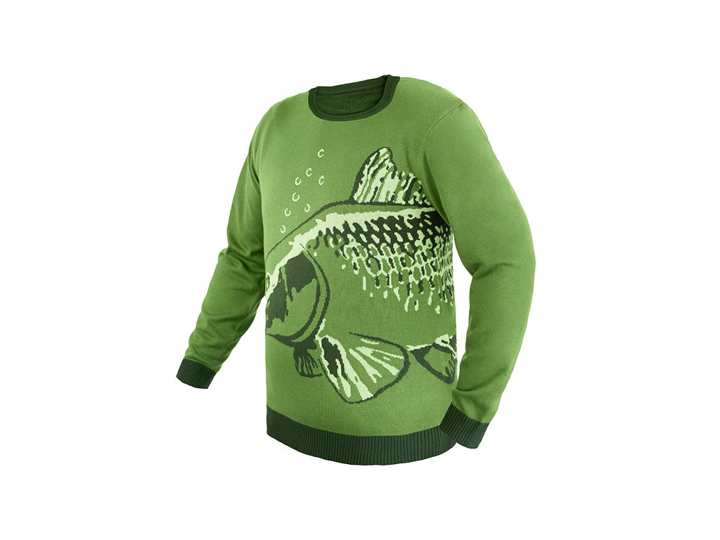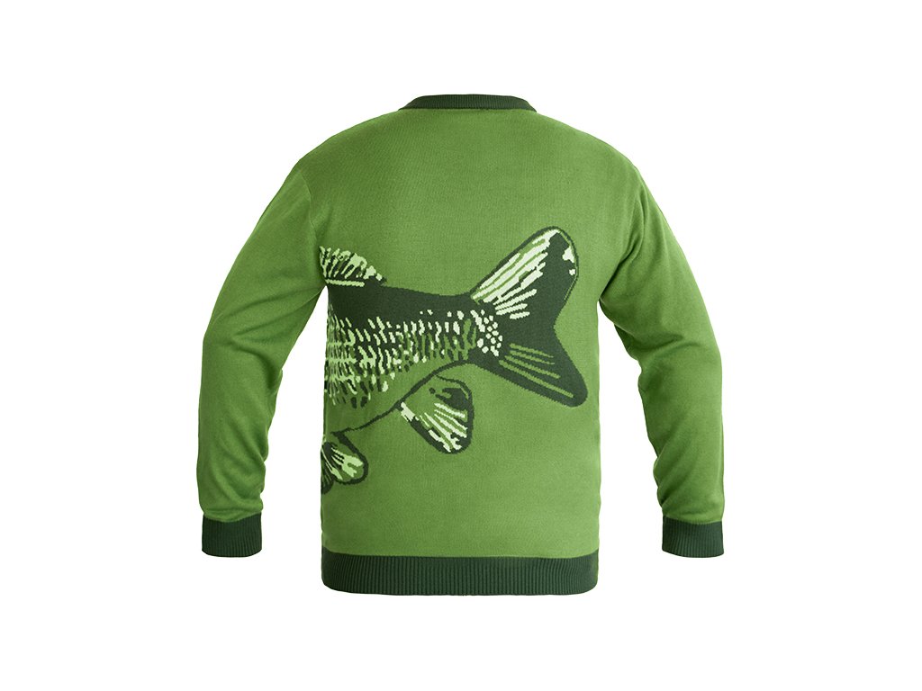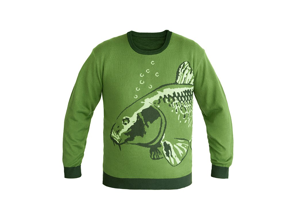 Zažijte rybolov v pohodlí a stylu v pleteném svetru Delphin CARP. Svetr s motivem kapra je navržen zejména pro vášnivé kapraře na nošení během výprav, určitě se s ním však budete cítit pohodlně i při procházkách v přírodě či městě. Svetr je vyhotoven z hřejivého materiálu, který vám poskytne potřebnou ochranu před chladem a vysoký stupeň komfortu během nošení. Svetr je vyhotoven v tmavě zelené barvě a jeho poznávacím znakem je velká grafika kapra nacházející se na přední i zadní straně svetru. Složení: Akryl 100%Doplňkové parametry