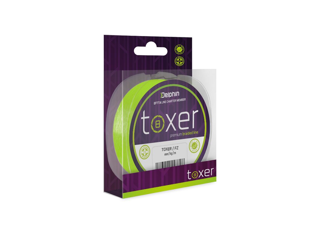 Vysoce kvalitní, extrémně pevná, velmi hustě pletená. Přesně to je definice splétané šňůry Delphin TOXER. Šňůra se skládá z 8 hustě pletených PE vláken, díky čemuž se vyznačuje minimální roztažností, kulatým průřezem a speciálním povrchem, díky kterému šňůra snáze klouže očky a zároveň snižuje hlučnost při navíjení. Díky hladkému kulatému povrchu šňůra mnohem lépe odolává odírání a poškození při lovu v různých překážkách. Fluo zelená barva zajistí výbornou viditelnost i ve špatných světelných podmínkách. Široká škála průměrů s excelentními nosnostmi zaručí, že TOXER si najde uplatnění ve všech stylech přívlače, ale nezklame ani žádného feederistu. MM/KG: 0.12mm/5,2kg, 0,14mm/6,3kg, 0,16mm/7,7kg, 0,18mm/9,5kg, 0,20mm/11kg, 0,23mm/12,8kgDoplňkové parametry