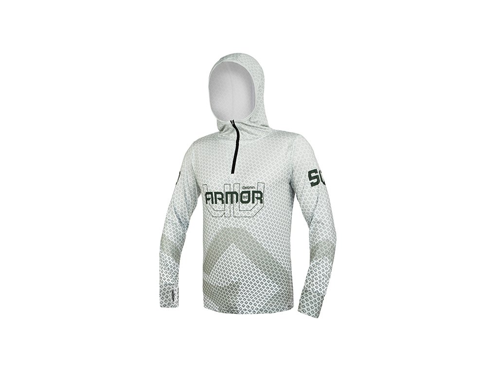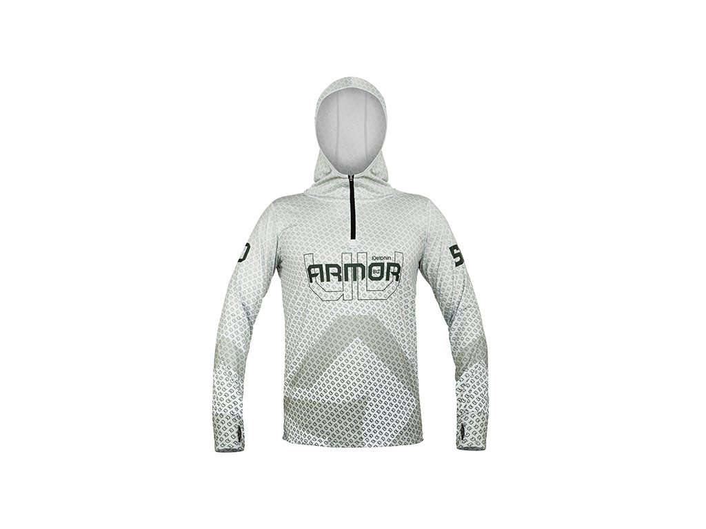 Tričko s kapucí Delphin UV ARMOR 50+ poskytuje důkladnou ochranu před přímým slunečním zářením během letních dnů. Použitá látka s ochranou UPF 50+ zabrání spálení citlivé pokožky a zároveň na dotek příjemně chladí i během nejteplejších dnů. Mysleli jsme také na nejpřehřívanější část těla, hlavu. Triko je vybaveno výrazně vyvýšeným límcem a kapucí, ale také prodlouženými rukávy s otvory na palec, což zvyšuje ochranu rukou. Velkou výhodou příjemného, elastického materiálu je schopnost rychlého vyschnutí v případě namočení během lovu. Samotné tričko je vysoké kvality, stejně jako použitý barevný potisk. Nabízíme je v široké škále velikostí od S, až po XXXL. Také v nabídce naleznete dvě barevná provedení v barvách Olive pro příznivce naturálních barev a barvě Neon pro příznivce výraznějších barev. Složení: 90% polyester, 10% elastanDoplňkové parametry