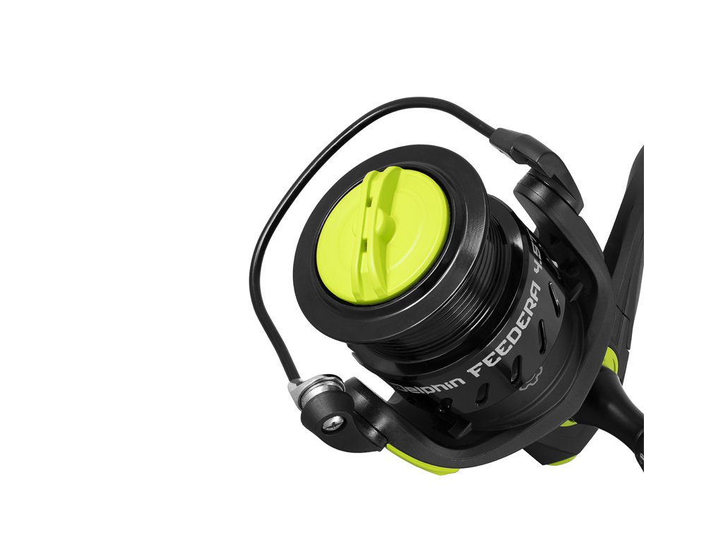 Jak již název napovídá, tento model navijáku je speciálně navržen pro lov feederovou technikou. FEEDERA má černé tělo s matnou povrchovou úpravou a výraznými zelenými detaily, což z něj dělá velmi zajímavý, nepřehlédnutelný kousek, který se skvěle hodí ke stejnojmennému prutu a také k řadě příslušenství REAXE. Naviják se vyrábí v ideální feederové velikosti 4500 s mělkou cívkou, která však zaručuje dostatečnou kapacitu vlasce i při delších náhozech. Naviják je vybaven sedmi (6+1) kuličkovými ložisky a převodovým poměrem 5,2:1, který zajišťuje dostatečně rychlé vytažení sestavy na břeh bez větší námahy. Naviják FEEDERA má také pevnou hřídel z nerezové oceli a silný kovový překlapěč s rolničkou, který zvyšuje odolnost a pevnost tohoto modelu. Sklopná klička navijáku má matně černou povrchovou úpravu a černou gumovou rukojeť, která je příjemná do ruky. Brzda má dostatečný výkon a zároveň poskytuje potřebnou citlivost při lovu ryb na jemný feederový prut. Technické parametry: Kapacita navijáku mm/m: 0,20/250 m 0,22/210 m 0,24/175 m Převodový poměr: 5,2:1 Počet ložisek: 6+1 Hmotnost: 314 gDoplňkové parametry