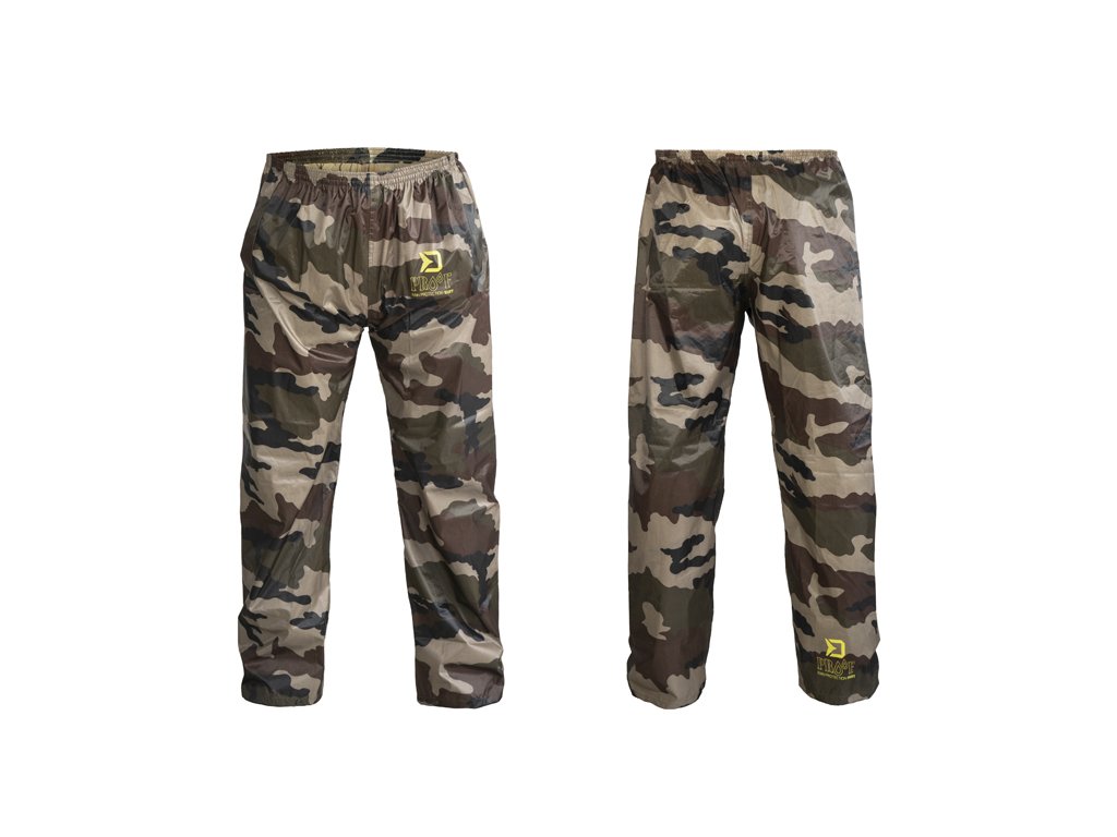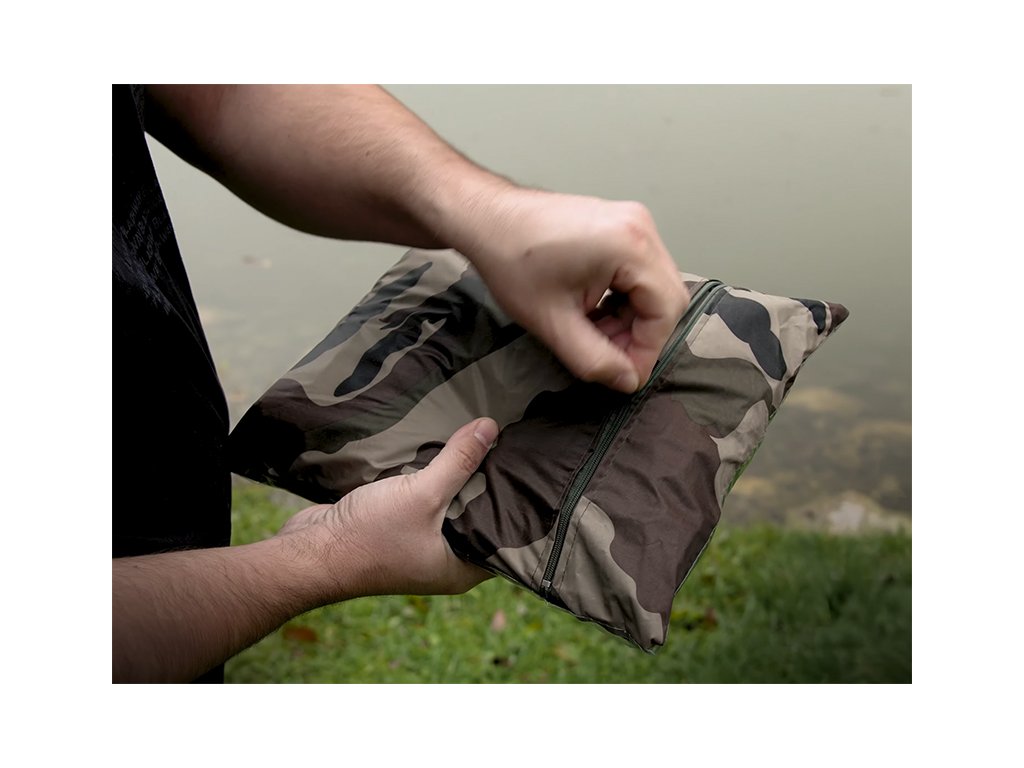 Do deštivých dnů je zde nepromokavý komplet Delphin PROOF, který vás dokonale ochrání před nepřízní počasí a překvapí svými kompaktními transportními rozměry. Je vyroben z voděodolné pogumované tkaniny s podlepenými švy a maskáčovým vzorem. Bunda Zapínání bundy je zajištěno pomocí odolného zeleného zipu překrytého lemem tkaniny se zapínáním na 4 plastové cvoky, což zvyšuje ochranu před deštěm. Kapuce je vybavena zatahováním na šňůrku, takže je možné přizpůsobit si ji podle svých potřeb a navíc si ji můžete srolovat a zazipovat do límcového prostoru. Límec je vyvýšen pro lepší překrytí krku a šíje a opatřený dalšími dvěma cvoky na připnutí kapuce. Konce rukávů mají přidané gumičky zabudované do jejich vnitřku, pro lepší utěsnění před vodou. V oblasti mezi lopatkami se z vnitřní strany nachází také síťka určená pro lepší odvětrávání. Spodní část bundy PROOF je opatřena šňůrkou s plastovými koncovkami pro zatažení pod úrovní pasu. Na obou stranách se nacházejí rozměrné kapsy s efektivním překrytím. Kalhoty Disponují pružnou gumičkou v oblasti pasu díky čemuž se snadno a rychle v případě potřeby oblékají. Celkový střih kalhot je volný a tudíž si je můžete natáhnout i na zimní oblečení. Spodní část je opatřena cvoky, pomocí kterých je lze zúžit. Oblek je balen v praktickém pouzdru se zipem vhodným pro transport v suchém či mokrém stavu, čímž ochrání ostatní věci před nechtěným namočením. Technické parametry: Materiálové složení: 100% Polyester s PVC povrchem Transportní rozměry: 32x27x5cmDoplňkové parametry