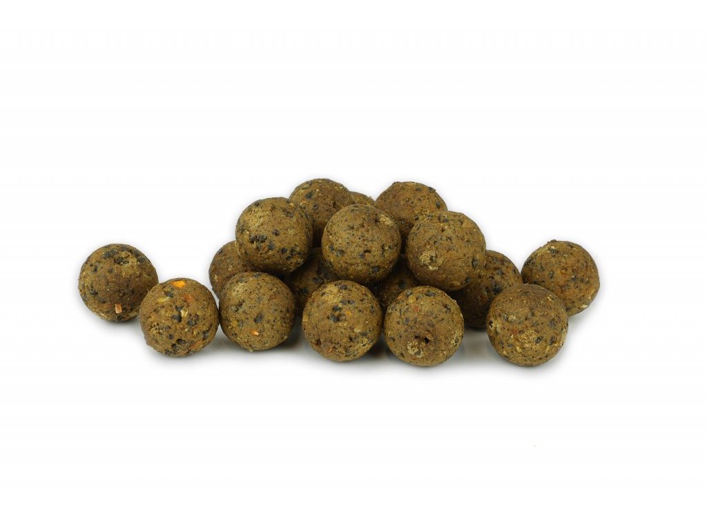 Po usilovné práci se nám podařilo vyrobit maximálně chutné a přitažlivé boilies, které budou kapři s důvěrou sbírat po celý rok. Zajímavostí je, že boilies obsahuje i drobné mini peletky s vysokým obsahem rybích olejů, které se při výrobním procesu částečně rozpustí, některé zůstávají v pevném stavu a celkově tak dodávají kuličkám na atraktivitě.