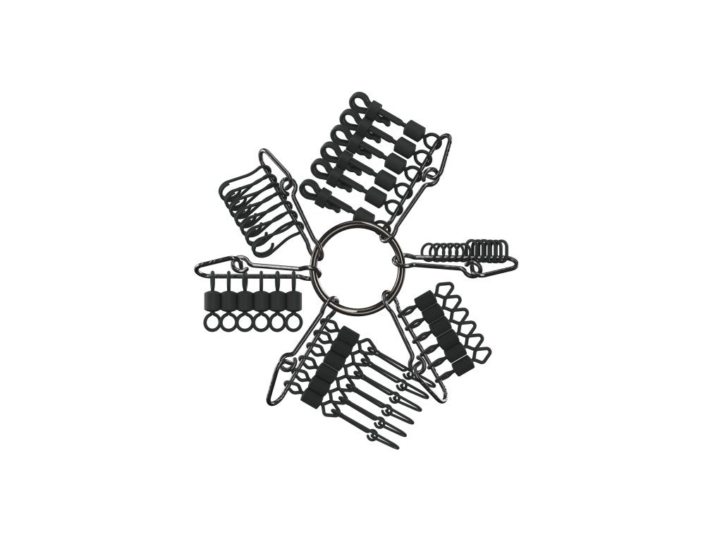 Univerzální karabinka v barvě černého niklu. Díky jejímu otevřenému tvaru ji lze použít téměř na cokoliv. Lze ji nasadit na obratlík, kroužek, zátěž či krmítko s očkem na průjezdy nebo splávky.Doplňkové parametry