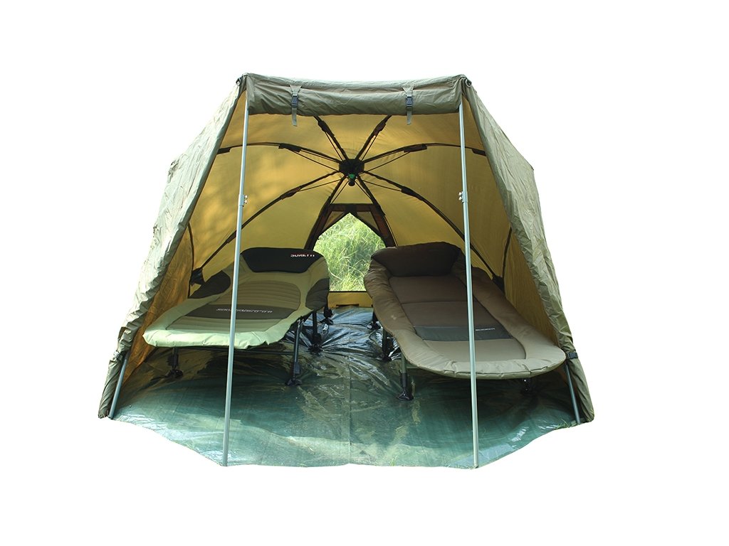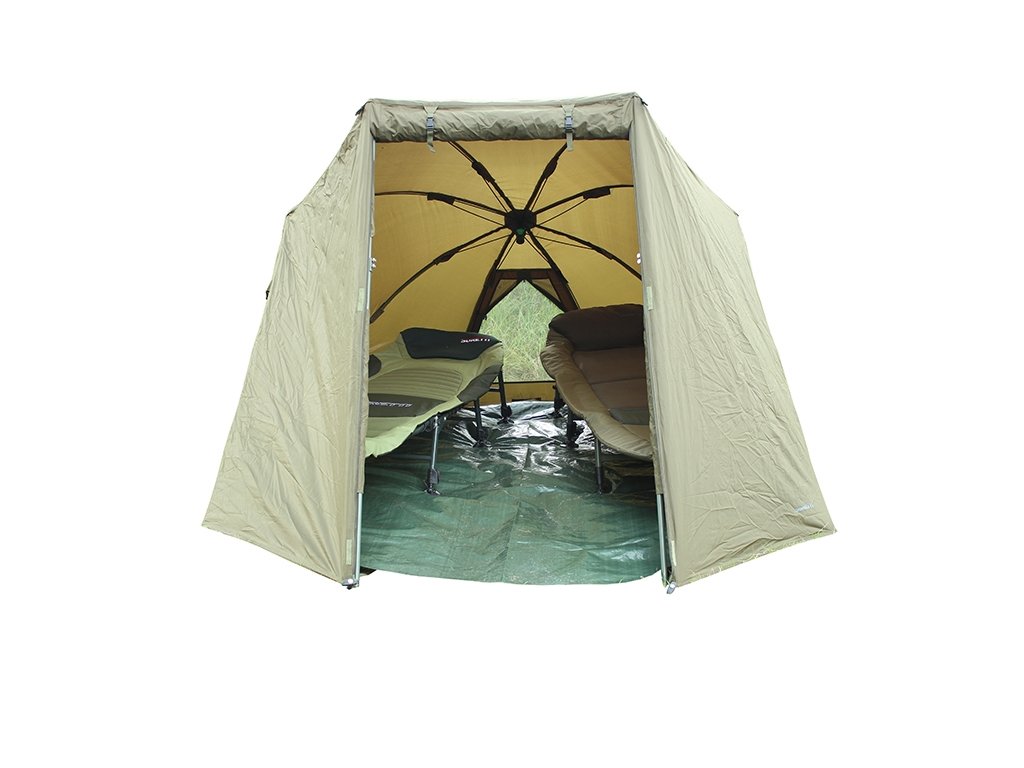 <p>Balance 2Man je bivak deštníkové konstrukce určený pro dvě lehátka. Vchod a obě boční strany se dají v případě potřeby srolovat, podlážka je na suchý zip. Přístřešek se ukotvuje po obvodu pomocí šroubovacích kolíků (v základní výbavě ocelové s kovovou hlavou s možností zatlučení), na čelní straně pomocí čtyř teleskopických tyčí a v případě špatných povětrnostních podmínek lze použít pro lepší stabilitu i čtyři kotvící provazy (dva vpředu a po jednom na boku). Bivak je vyrobený z 210D Oxford-Nylon s odolností 3 000 mm vodního sloupce, které je dostatečné a při testování nepropustilo vodu ani v hustém dešti. Všechny švy jsou podlepené. K přístřešku lze dokoupit i přehoz Overwrap Balance 2Man vyrobený ze stejného materiálu, pomocí něhož zateplíte prostor a můžete jej pak použít i k přenocování v extrémnějších teplotních podmínkách.</p> <p>Přehoz 210D Nylon<br />Vodní sloupec: 3000 mm<br />Podlepené švy<br />Odnímatelná podlážka<br />Deštníková konstrukce<br />14x T kolík<br />4x teleskopická tyč<br />4x kotvící provaz<br />Přepravní sak<br />Váha: 8,5 kg<br />Š 230 x D 240 x V 150 cm<br />Transport: 150 x 23 x 23 cm</p>Doplňkové parametry