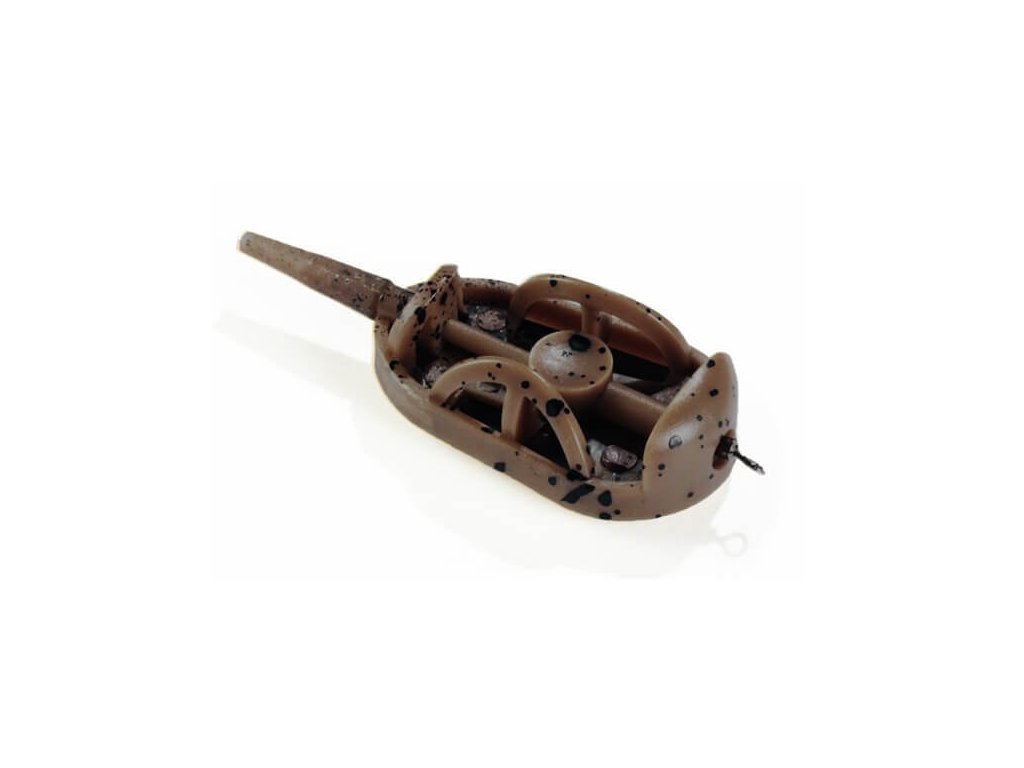 Inovovaný model method feeder krmítka s miskou v centrální části pro umístění háčku s nástrahou přímo mezi krmítkovou směs. Jeho vynikajícími vlastnostmi jsou: aerodynamický tvar s namáčknutou směsí pro daleké náhozy, plochý tvar s olověnou zátěží po celé délce pro lepší fixaci na dně (oceníte hlavně na řece).Krmítko je primárně určeno k použití v průběžné sestavě, avšak za pomocí obratlíku či gumového korálku se může zafixovat a tím nám vznikne buď pevná nebo poloprůbežná montáž. Doporučujeme ke krmítku zakoupit formičku pro tvarování krmení.