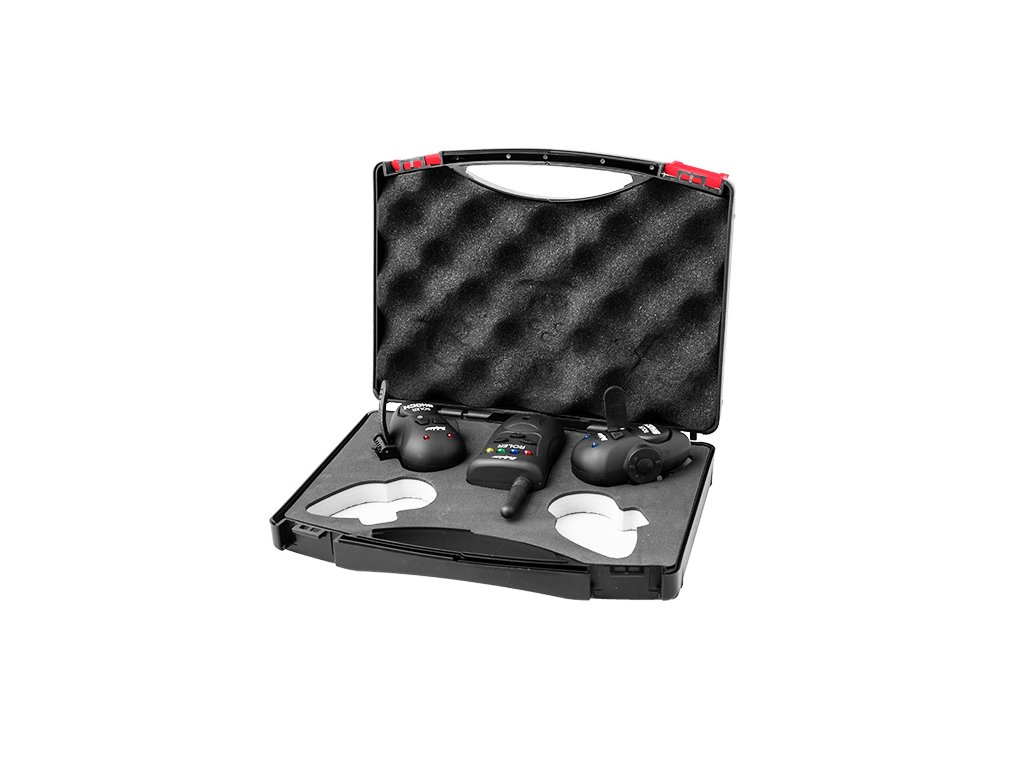 Otřesová sada signalizátorů se základem v léty ověřené sadě Delphin ROLER. Díky kvalitním otřesovým čidlům dokáže sada spolehlivě detekovat záběry na vašich prutech. Samotné signalizátory jsou o ně připevněny pomocí nastavitelného gumového popruhu. Díky němu je upevnění o kterýkoliv typ prutu zcela bezproblémové. Využití této sady je zejména pro sumcový rybolov. Dosah samotné sady v závislosti na podmínkách až 130m. Samozřejmostí je tvrdý transportní kufřík pro bezpečnou přepravu. Navíc na tuto sadu poskytujeme prodlouženou, až 3 letou záruku! Charakteristika signalizátoru: Napájení 3ks bateriemi typu LR44. Možnost nastavení 4 různých tónů signalizace a 4 úrovní hlasitosti. Samozřejmostí je tichý mód. Samotné diody světelně indikují záběr 20s po uskutečnění. Signalizátor je voděodolný. Charakteristika přijímače: Napájení 3ks bateriemi typu AAA. Možnost nastavení 4 různých tónů signalizace a 4 úrovní hlasitosti. Samozřejmostí je vibrační mód a indikace led diodami. V zadní části se navíc nachází praktický klip na opasek. Sada 2+1 obsahuje vždy modrý a červený signalizátor. Sada 3+1 obsahuje vždy modrý, červený a zelený signalizátor. Sada 4+1 obsahuje vždy modrý, červený, zelený a žlutý signalizátor.Doplňkové parametry