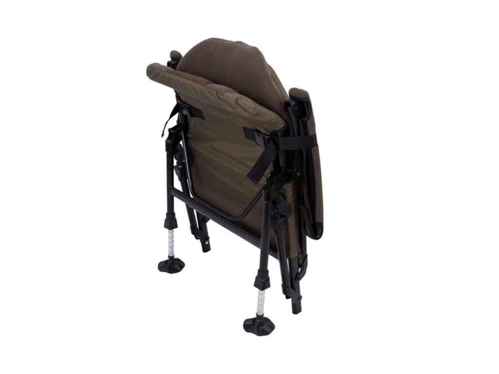 Křeslo je vybaveno čtyřmi nastavitelnými nožičkami, které vysunete jednoduše pomocí jednoho zmáčknutí. Nožičky jsou dále vybaveny velkými patkami proti zaboření do země, takže si můžete křeslo nastavit podle vašich požadavků, bez ohledu na nerovném terénu.