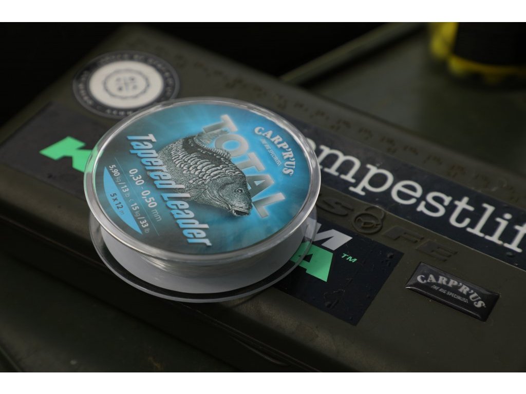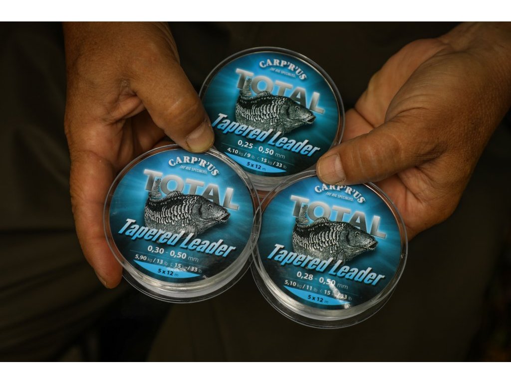 Ujímané vlasce se stali jedním z nejpopulárnějších řešení při nahazování na velké vzdálenosti. Jsme hrdí na to, že vám můžeme představit Carp´R´Us Total Tapered Leaders. Jemný, pevný, zužující se leader v křišťálově čisté barvě. Každá cívka pojme 5 samostatných návazců o délce 12 m, které lze stříhat podle individuálních potřeb každého kapraře.