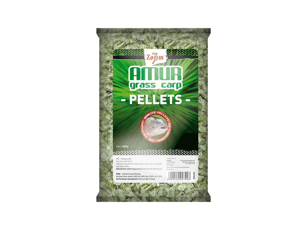 Tyto pelety jsou produktem čistě rostlinného původu, což je řadí mezi velmi úspěšná vnadidla pro lov amurů. Vyznačují se vysokou nutriční hodnotou, množstvím bílkovin, vitamínů a řas. Po rozdrcení těchto pelet je možné je použít jako základ do boilies vlastní výroby pro lov amurů. Výrobce: Carp ZoomDoplňkové parametry