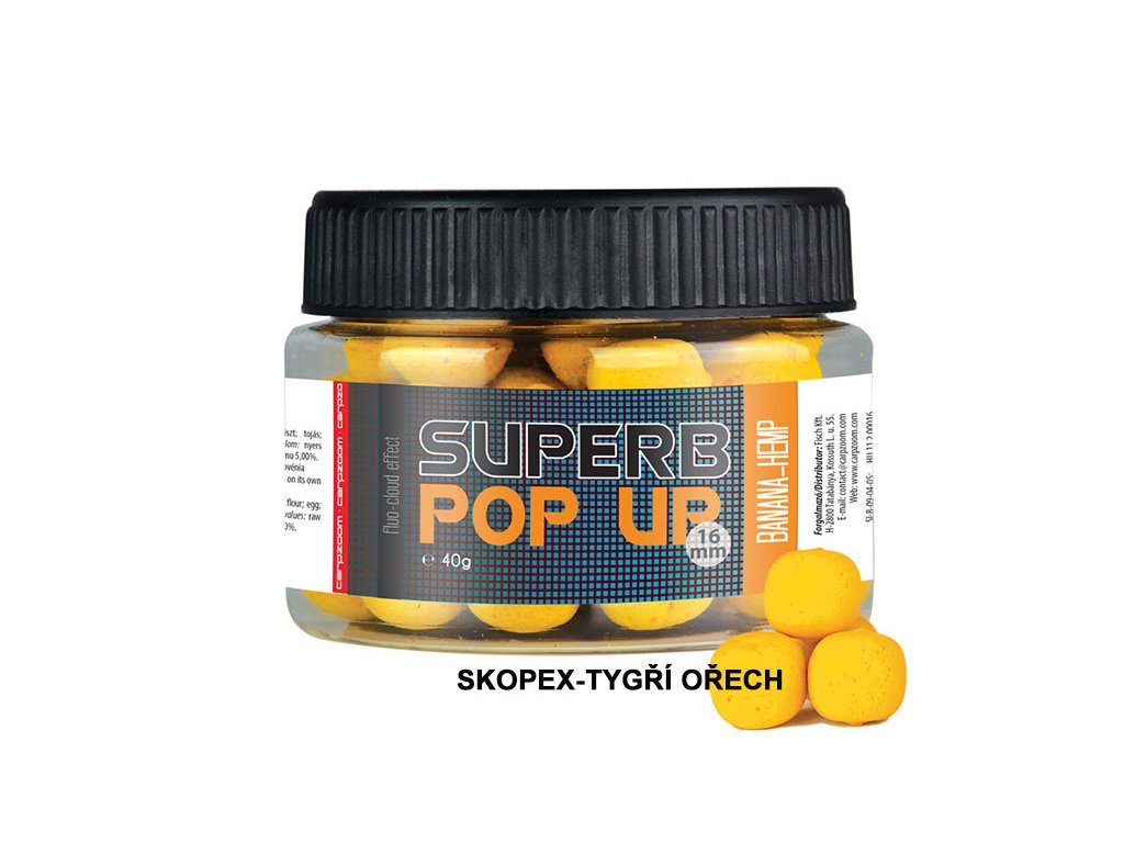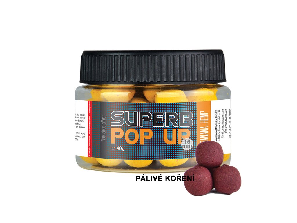 Superb Pop up je jeden z našich nejnovějších a vylepšených Pop up boilies. Zvýšili jsme jeho vztlak a tak je vhodný i pro metotu Zig Rig. Po vhození do vody se okamžitě začne uvolňovat chuť a vytvářet barevný oblak. Tyto vlastnosti po dlouhou dobu lákají ryby na háček. Superb Pop up je perfektní volbou pro soutěže a má skvělou gumovitou pěnu. Snadno se propichuje jehlou, přesto je vhodný i pro daleké náhozy a odolává drobným rybám. Výrobce: Carp ZoomDoplňkové parametry