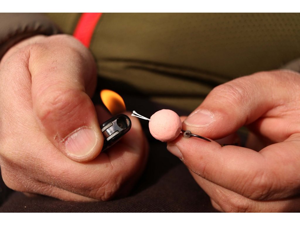 Použití je jednoduché – kousek šňůrky Bait braid provlékněte skrz kroužek, nebo mikro obratlík, oba konce protáhněte skrz boilies a zastřihněte 0,5 cm od nástrahy. Vyčnívající kousky zatavte pomocí zapalovače, čímž vytvoříte dostatečně velkou „pecičku“ zabraňující sklouznutí nástrahy.