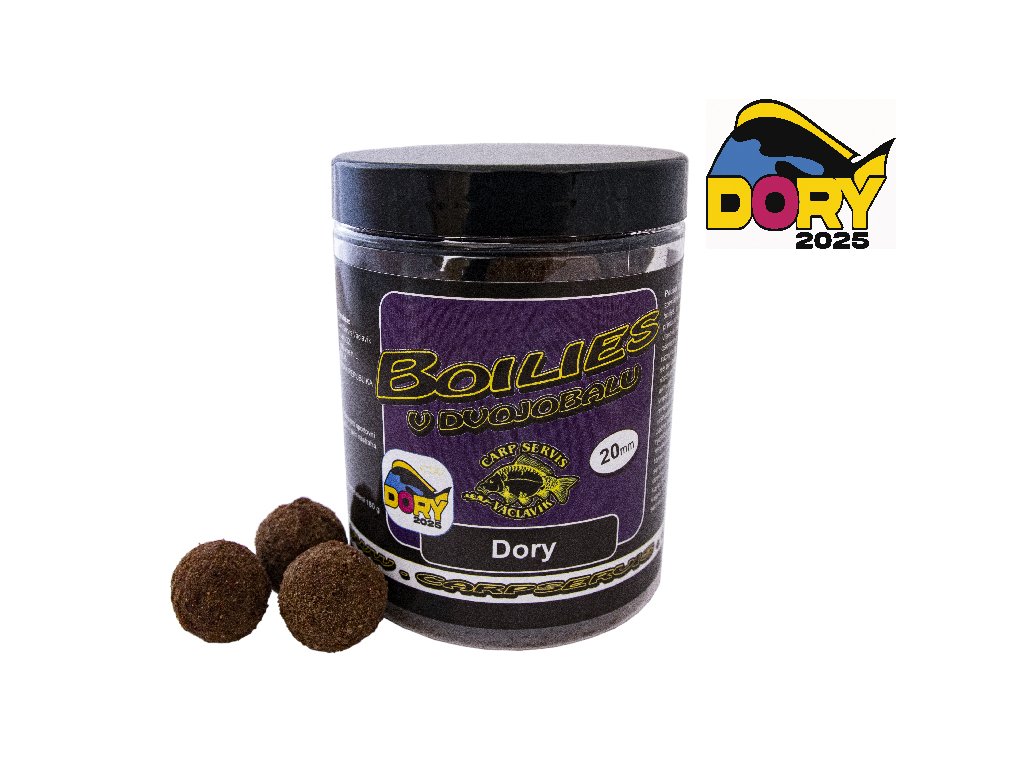 Boilies v dvojobalu je speciálně zatraktivněné boilies určené pro aplikaci přímo na háček pomocí tzv. vlasové metody. Boilies je ošetřeno ve dvou krocích různými druhy atraktorů, které se po vhození do vody rozdílně chovají. Nejprve se aktivním způsobem uvolní vnější vrstva obalu, která je mnohem rozpustnější než vrstva pod ní. Druhá vrstva se začne uvolňovat až později a rychlost rozpouštění je mnohem pozvolnější, než je tomu u vnější vrstvy. Celkově se tyto druhy atraktorů doplňují a tvoří společně vynikající prostředek k přilákání kaprů. Dory prostupuje časem z našich počátků, doučuje se novým schopnostem a dnes se objevuje jako nově vybroušená kulička z dávno nalezeného drahokamu. Dory je boilies postavené na lososovém základu, s přívlastkem čistě přírodní . Samozřejmě, že se tento produkt podobá spíše, dnes vyráběným nástrahám překypujícím rafinovanými atraktory, než strohým předchůdcům z dob před mnoha lety. Dory se projevuje jako nástraha spíše do teplejší vody, avšak opakovaně nás překvapila i v době chladu. Bude vám dělat radost v okamžiku, kdy budete chtít nachytat více ryb a přitom cílit i na větší exempláře. Její čas přichází až voda bude příjemná nejen otužilcům. Však nechte se překvapit. Výrobce: CSVDoplňkové parametry