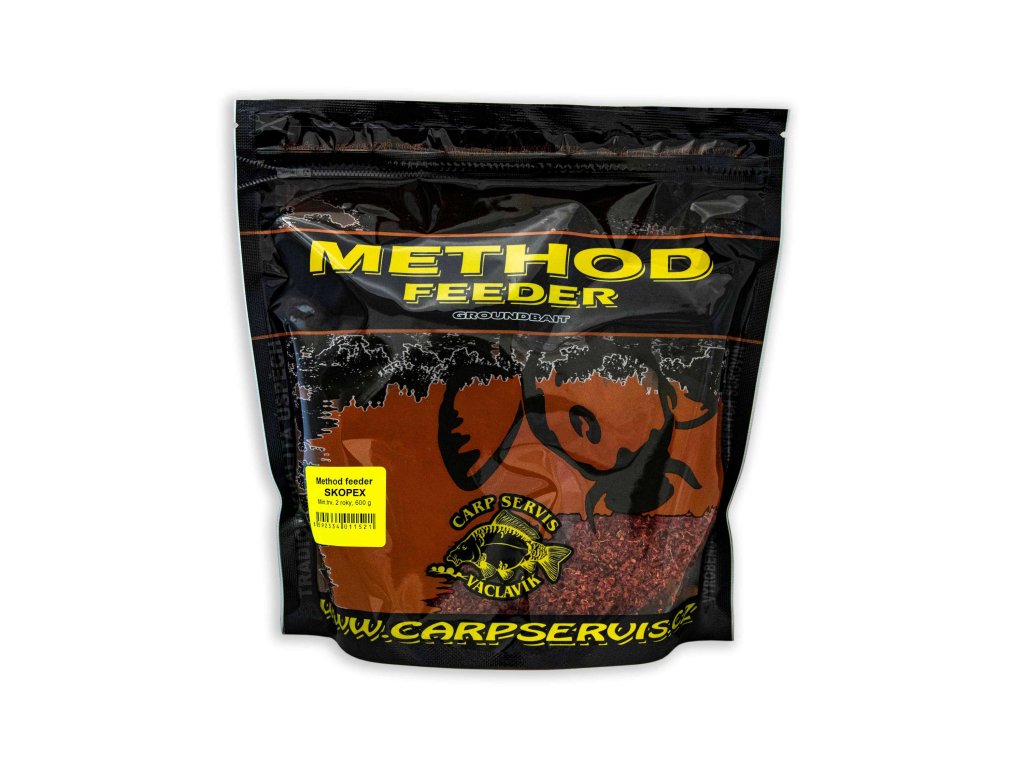 Method feeder je speciálně navlhčená vnadící směs k lovu kaprovitých ryb. Je složena z širokého spektra tepelně upravených surovin, které jsou zárukou vysoké atraktivity. Dále obsahuje aromatické látky s ověřenou účinností a velmi přesvědčivá ochucovadla na přírodním základu. Tuto směs lze snadno lisovat do method feederových či tvarovat do klasických krmítek. Lze touto směsí vnadit i pomocí samostatných koulí. A to ručně nebo prakem. Výrobce: CSV VideoDoplňkové parametry