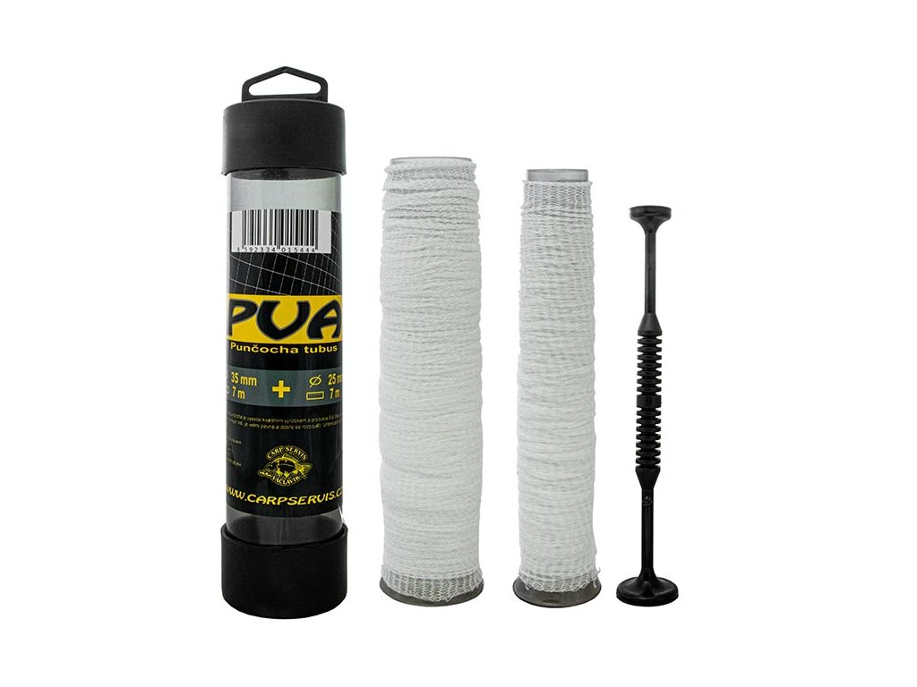 Naše PVA punčochy jsou vysoce kvalitním výrobkem z produkce EU. Díky jemnému úpletu z tenkých nití je velmi pevná a dobře se rozpouští. U této varianty je navíc rozpustnost zrychlená právě pro lepší funkci v chladné vodě. V případech, kdy je potřeba rozpustnost PVA materiálů zpomalit, což zpravidla bývá při lovu ve velkých hloubkách nebo na průtočných vodách, doporučujeme naplněnou punčochu ponořit do CSL Cornkiller. Tímto krokem se značně zpomalí rozpustnost PVA až na cca 2 min. a zároveň se značně zvýší atraktivita nástrahy. Balení obsahuje: viz. foto - 1x Tubus s punčochou PVA / 7 m průměr 25 mm - 1x Tubus s punčochou PVA / 7 m průměr 35 mm - 1x pěchovadlo Výrobce: CSVDoplňkové parametry