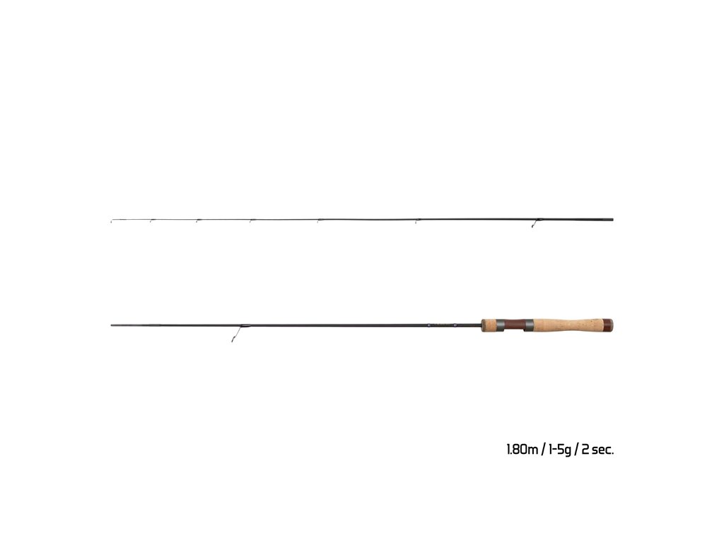 Jak už název napovídá, TROUTERA HardLURE je speciálně navržený prut pro lov pstruhů s použitím malých, tvrdých umělých nástrah jako jsou rotačky, plandavky nebo woblery. Díky svému propracovanému designu a vynikajícím vlastnostem, které tento prut nabízí, se stane neodmyslitelnou součástí výbavy pro většinu příznivců lovu pstruhů či okounů. Štíhlý blank postavený na 24T karbonu činí prut extrémně lehkým a vyznačuje se rychlou akcí nezbytnou pro nahazování malých nástrah do dostatečné vzdálenosti od břehu, právě do míst, kde pobývají plaší pstruzi. K preciznímu vedení jemné šňůry nebo vlasce dopomáhají i jednostopková očka se SIC výplní, která byla na prut TROUTERA HardLURE použita. Černé vinutí oček a samotná černá očka skvěle ladí s celkovým designem prutu. Vizuálně působivým doplňkem prutu je sedlo s imitací dřeva, které dokonale doplňuje korková rukojeť. Použité materiály jsou vysoce kvalitní a ošetřené proti nepříznivým vnějším vlivům. Rukojeť i sedlo byly navrženy tak, aby se prut snadno držel i při několikahodinovém lovu. Výhodou rukojeti je její krátká délka, která zaručuje zvýšenou obratnost při vedení nástrahy, záseku, ale také při zdolávání ryby. Delphin TROUTERA HardLURE už na první pohled vyniká svým elegantním designem. Tmavý blank, korkovou rukojeť, dřevěné sedlo a prvky zlaté a modré barvy doplňuje vinutí nad rukojetí, které je inspirováno barvami pstruha duhového. Kombinací těchto vlastností tak vznikl extrémně funkční a elegantní přívlačový prut, který překvapí svojí přijatelnou pořizovací cenou. Technické parametry: Model: 180cm 1 – 5 g Počet dílů: 2 Průměr blanku nad rukojetí: 7mm Počet oček: 8 Transportní délka: 94,5cm Hmotnost: 82g Rukojeť: korek, imitace dřeva Délka rukojeti (od spodní části prutu po střed sedla): 18,5cm Model: 210cm 2 – 7 g Počet dílů: 2 Průměr blanku nad rukojetí: 8mm Počet oček: 9 Transportní délka: 109,5cm Hmotnost: 90g Rukojeť: korek, imitace dřeva Délka rukojeti (od spodní části prutu po střed sedla): 21,5cmDoplňkové parametry