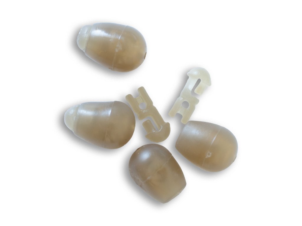 Rychlovýměnné korálky na propojení hlavního vlasce s návazcem slouží zároveň i jako tlumící korálek zátěže. Vnitřní část obsahuje jednoduchý systém pro spolehlivé uchycení návazce a jeho rychlou výměnu, vnější slouží jako jistící krytka.