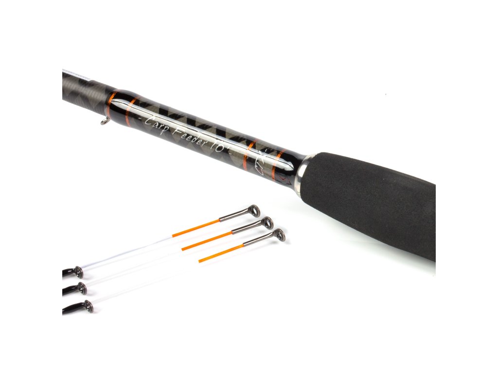 CTX Carp Feeder pruty jsou krásně tenké a lehké. Výborně se s nimi nahazuje a mají perfektní zdolávací akci. Jejich vlastníci se mohou těšit na laserem broušenou bezlakovou úpravu blanku, sedlo FUJI VSS16 (CTX) očka Single Leg Anti-Frap. Rukojeť je vybavena prvotřídním korkem a nad sedlem japonskou EVA gumou. U každého feeder prutu jsou tři různě silné špičky. Pruty jsou dodávány v obalech, které pojmou i naviják, nahoře i dole uložené do neoprénových chrániček.Krátké 9‘ (2,74m) a 10‘ (3,05m) pruty jsou určené na menší a středně velké vody. Delší 11‘ (3,35m) a 12‘ (3,66m) na větší vody a vzdálenosti. Akce Feeder prutů je Medium, doporučená maximální zátěž od 40g do 60g (u modelů BW). Modely s označením BW jsou určeny na větší vody a větší ryby, mají mírně prodlouženou rukojeť na delší náhozy. Špičky jsou značeny v oz (unce), buď ze sklolaminátu, nebo plného carbonu.