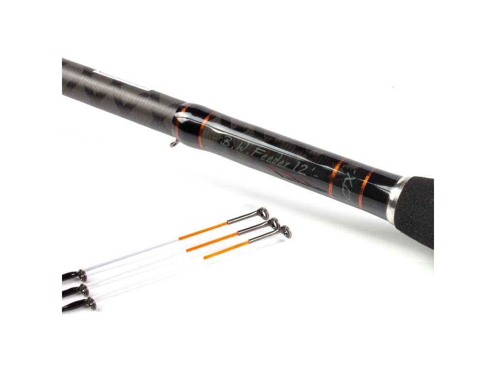 CTX Carp Feeder pruty jsou krásně tenké a lehké. Výborně se s nimi nahazuje a mají perfektní zdolávací akci. Jejich vlastníci se mohou těšit na laserem broušenou bezlakovou úpravu blanku, sedlo FUJI VSS16 (CTX) očka Single Leg Anti-Frap. Rukojeť je vybavena prvotřídním korkem a nad sedlem japonskou EVA gumou. U každého feeder prutu jsou tři různě silné špičky. Pruty jsou dodávány v obalech, které pojmou i naviják, nahoře i dole uložené do neoprénových chrániček.Krátké 9‘ (2,74m) a 10‘ (3,05m) pruty jsou určené na menší a středně velké vody. Delší 11‘ (3,35m) a 12‘ (3,66m) na větší vody a vzdálenosti. Akce Feeder prutů je Medium, doporučená maximální zátěž od 40g do 60g (u modelů BW). Modely s označením BW jsou určeny na větší vody a větší ryby, mají mírně prodlouženou rukojeť na delší náhozy. Špičky jsou značeny v oz (unce), buď ze sklolaminátu, nebo plného carbonu.