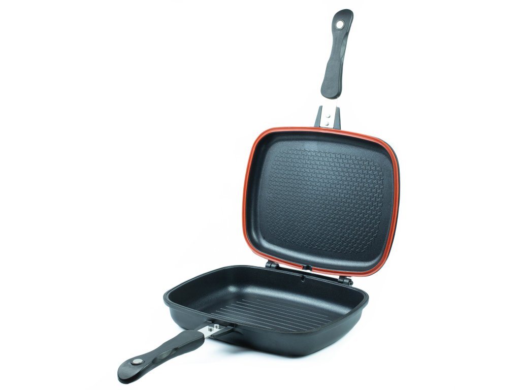 Pánvička Garda Grill Master je ideální pomocník pro přípravu jídla u vody. Skládá se ze dvou pánví o rozměru 27 x 24 cm, z nichž jedna je hlubší a jedna mělčí. Má oboustranný nepřilnavý povrch, krásný design, dva různé povrchy dna, speciální těsnění mezi oběma pánvemi a pohodlnou rukojeť s magnetickým klipem. Je z vysoce kvalitní litiny, která zaručuje životnost po mnoho let. Jídlo se na ní nepřichytává, proto se velmi snadno čistí. Je skvělá pro grilování, opékání, pečení, smažení, přípravu toastů a další úpravu jídel, dokonce v uzavřeném stavu funguje podobně jako „papiňák“. Její vyšší hmotnost je jednak známkou kvality materiálu, navíc zajišťuje stabilitu na vařiči. A v neposlední řadě vám do ruky dává pádnou zbraň při ochraně před sousedními rybáři, divokými prasaty či neohlášenými porybnými.Rozměry: 24x27x7cm + 18cm rukojeť