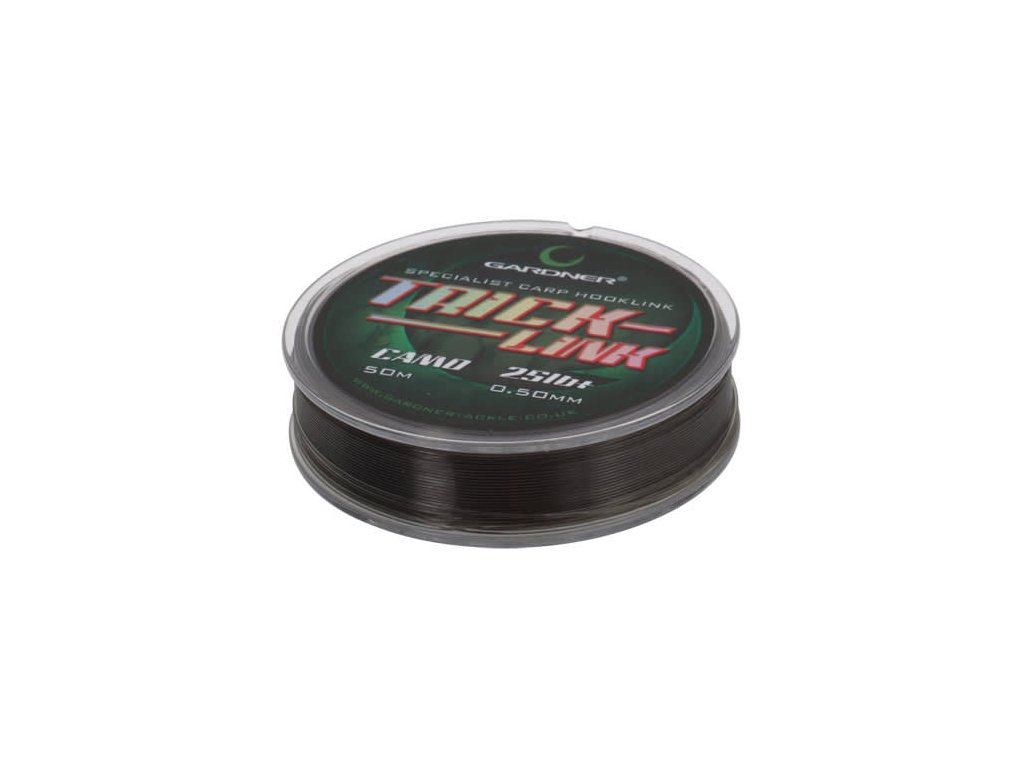 Disponují správnou tuhostí v návazci a tím zabráňují zamotání, či jiným komplikacím při odhodu a dopadu návnady na dno. Výhoda tohoto materiálu je, že je bez paměti s velkou pevností a odolností v uzlu a nezamotává se. Materiál je jemný a přesto dostatečně tuhý. Je výborně maskovaný "choddy" šedá / zelená barva, která se hodí do různých vodních prostředí - včetně štěrku a hlíny pískoven, jezer, kanálů a řek. Má vynikající pevnost v uzlu a dobře se váže! Technické údaje: Délka: 50m Průměr: 0,45mm/ Nosnost: 20lb+ Průměr: 0,50mm/ Nosnost: 25lb+ Odkaz na video: http://gardnertackle.co.uk/products/featured-products/trick-link/Doplňkové parametry