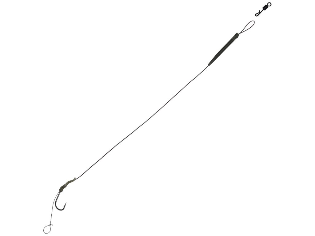 Na výrobu tohoto návazce byly použity ty nejkvalitnější komponenty. Háček je osazen rovnátkem pro lepší zaseknutí v tlamce ryby. Tento návazec je osazen převlekem proti zamotání a dodáván včetně rychlovýměných obratlíků. Použitá svlékací šňůrka černé barvy s nosností 25 lb ( 11,1 kg ). Balení: 2 ks Délka: 27 cm Velikosti háčku v nabídce: 2 / 4 / 6Doplňkové parametry