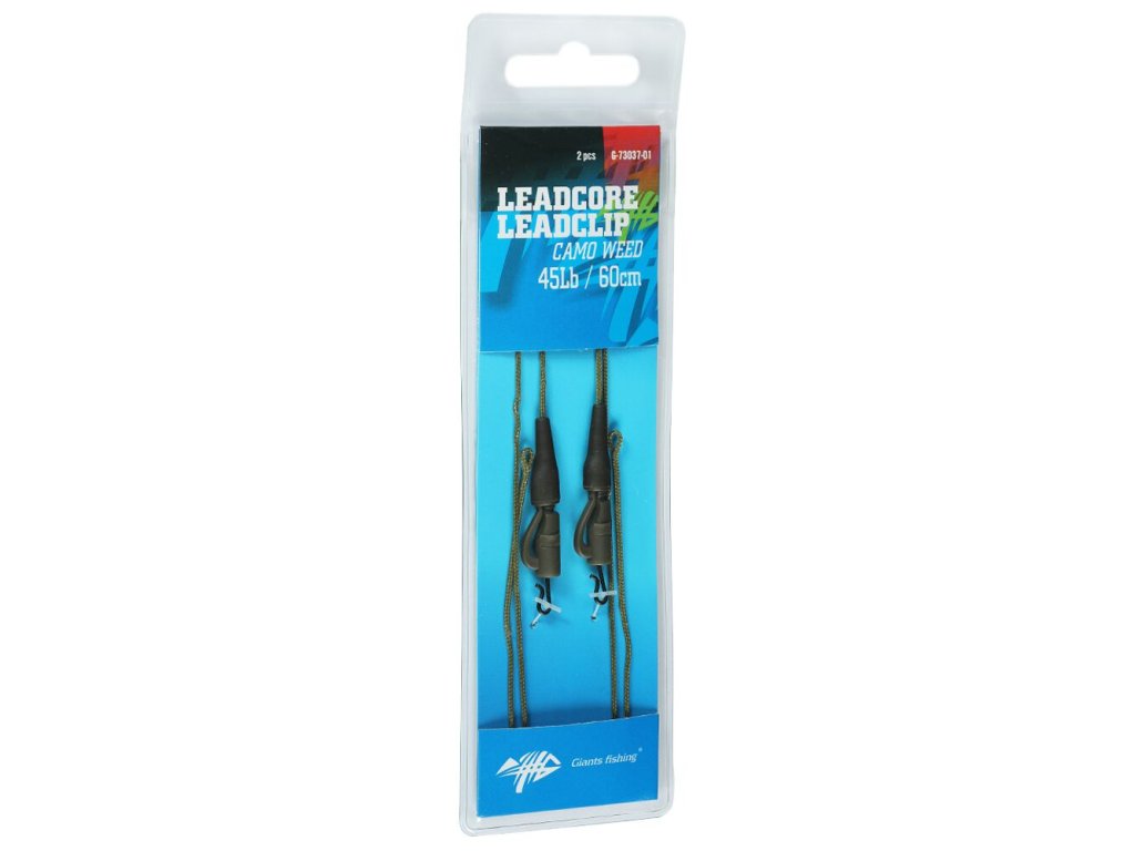 Giants fishing Montáž s olověnou šňůrkou Leadcore 45Lb Leadclip (2ks) 60cm