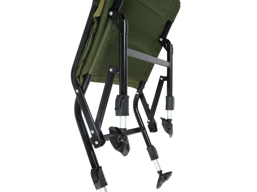 Na křesílko bylo použito polstrování, které je vyrobeno z příjemného polar fleece. Konstrukce z lehké, ale přitom pevné ocelové slitiny. Specifikace: - Rychle rozložitelná konstrukce - Jedinečný design matrace s polar fleecem - Použitá tkanina tmavě zelený polyester 500D/ polar fleece - Ocelová konstrukce o průměru 22 mm - Čtyři výškově nastavitelné nohy - Velké pacičky proti zaboření do bláta - Rozměry: 38 x 53 x 32/75 cm - Váha: 4,7 kg Stolek do přístřešku hliníkové konstrukce černé barvy, který je dodáván včetně nepromokavého obalu v atraktivním maskáčovém designu. Vhodný pro odkládání často používaných věcí při rybaření. Stolek je vyroben z hliníkové slitiny a lze jej díky lehce ovladatelnému upínáku snadno přidělat k lehátku či sedačce. Dále je v něm otvor se síťkou pro držení láhve. Rozměry: 15x25cm Odkaz na video: http://www.youtube.com/watch?v=yPiXslfnDDcDoplňkové parametry