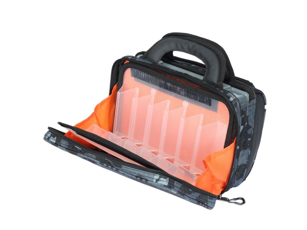 - Dvojí použití jako ledvinka, nebo taška na nohu - Provedení bez zipů pro snadný přístup ke krabičkám - Dodáváno včetně dvou plastových krabiček - Vyklopením přední části získáte platformu na přípravu nástrahy - Atraktivní maskáčové provedení v šedé barvě - Vodě odolný nylonový materiál 420D - Rozměry tašky: 21x11x29cm - Rozměry krabiček: Menší: 20 x 13,5 x 4 cm / Větší: 27 x 18 x 4 cm - Hmotnost: 0,9kg Vláčecí taška s opravdu širokým využitím, do které uložíte přehledně jak voblery, díky speciálnímu plastovému zásobníku, na ostatní nástrahy jsou určeny plastové krabičky a PVC sáčky na suchý zip. - Vnitřní přihrádky mají tři samostatné oddělení - Přední přihrádka obsahuje 5ks PVC sáčků na suchý zip - Prostřední a levá přihrádka obsahují každá plastovou krabičku (střední a větší) - Zadní přihrádka obsahuje plastový zásobník na voblery a třpytky - Vodě odolný nylonový maskáčový materiál 420D - Rozměry tašky: 29x13x20cm - Rozměry krabiček: 19x13,5x4cm / 27,5x18x4cm - Hmotnost: 0,86kg Odkaz na video: http://www.youtube.com/watch?v=qCMNraFK7isDoplňkové parametry