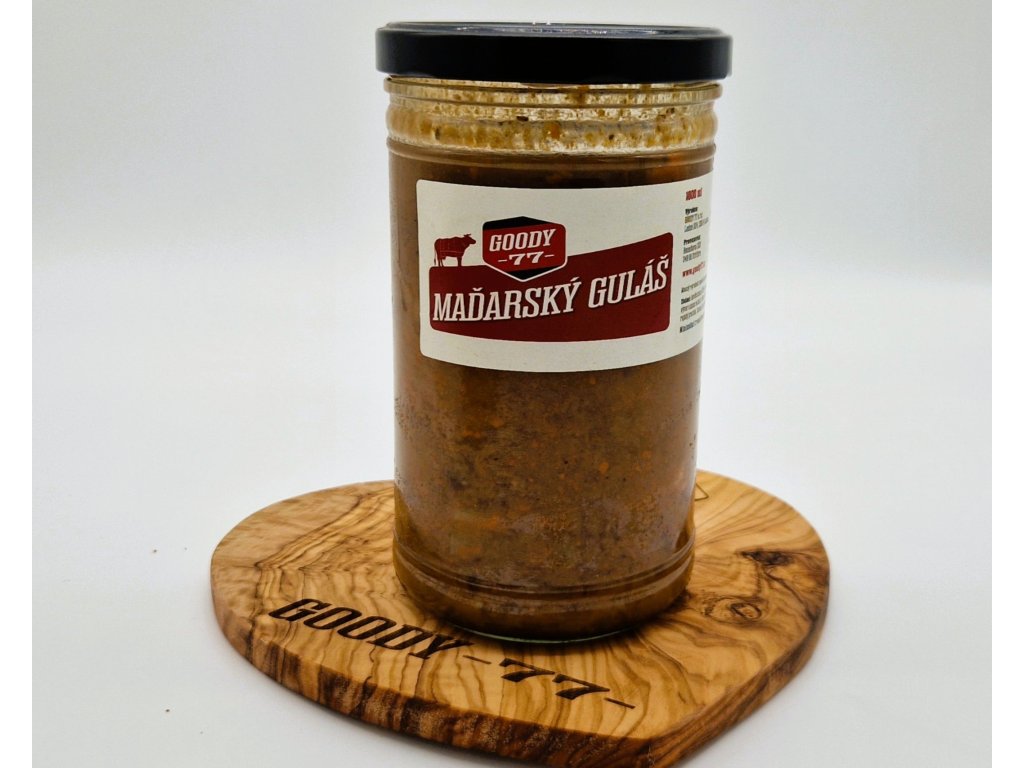 Maďarský guláš je vyroben čerstvého krku mladého býčka a je doplněn o čerstvou zeleninu (rajčata a papriky). Vyráběn je podle staré domácí receptury.