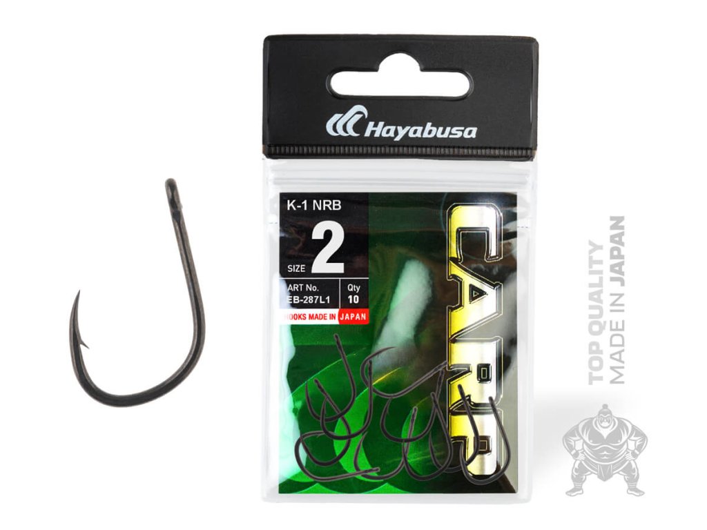 Háček Hayabusa K-1 s širokým obloukem i pro objemnější nástrahy, který zvětšuje dosah při záběru a zajišťuje jisté zaseknutí i v hustší vegetaci nebo ztížených podmínkách. Skvěle se hodí pro lov kaprů na boilies a pelety, ale i pro použití s většími měkkými nástrahami. Jsou vhodné jak pro klasické kaprové montáže, tak i pro moderní prezentace nástrah.