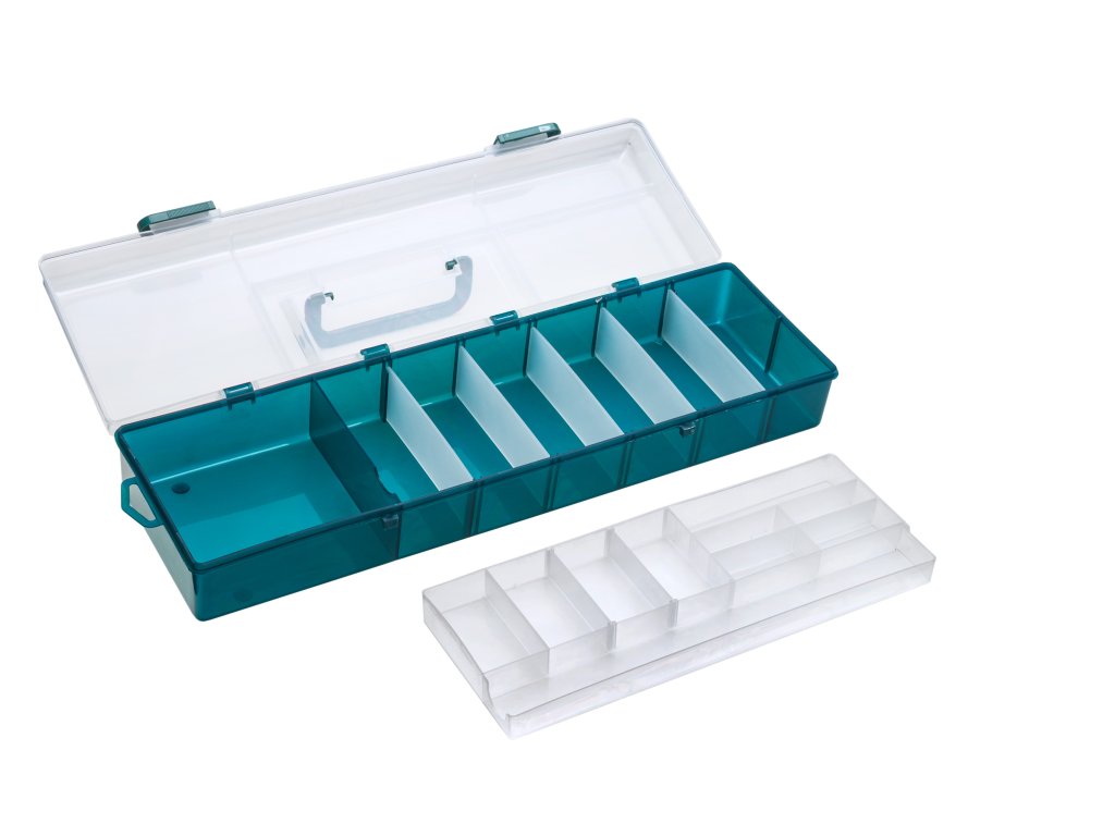 Nabídka plastových krabiček a kufříků představuje ucelený sortiment osvědčených a stále žádaných modelů. Zajímavé jsou dvou a třípatrové kufříky, vyrobené z vysoce odolného plastu. V zavřeném stavu udrží stojícího dospělého člověka. Za vynikající ceny vám nabízíme i krabičky na drobné příslušenství, háčky, umělé mušky atd. Řada modelů z naší nabídky krabiček přináší drobné inovace oproti běžně nabízeným typům na trhu. Tyto drobné úpravy jsou vedeny snahou maximálně přizpůsobit i toto základní příslušenství praktickým požadavkům rybářů. Všechny krabičky jsou vyrobeny z plastové hmoty s příměsí silikonu. Umožňují proto bezproblémové přechovávání agresivních gumových twisterů a podobných nástrah.Doplňkové parametry