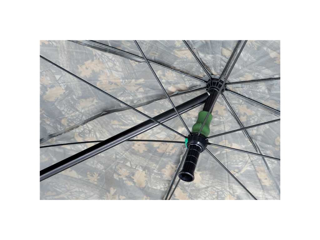 Kvalitní a velký deštník s klasickou konstrukcí a naklápěcím systémem. Potah v atraktivní maskáčové úpravě je vyroben z odlehčeného, 100% nepromokavého materiálu se svařovanými švy. Zesílená tyč zaručuje maximální stabilitu.Poznámka: Rozměr deštníku se myslí hodnota naměřená od jedné koncovky k protilehlé po vnější straně deštníku.