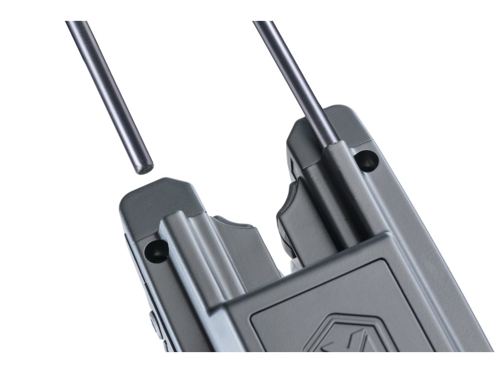 Hlásiče záběru, vyvinuté a designované značkou Mivardi v České republice. Jejich hranaté tělo v retro stylu připomíná návrat ke kořenům kaprařiny a zdůrazňuje základní hodnoty - poctivou kvalitu a spolehlivost. Jsou přímo extrémně nabité funkcemi, čímž stanovují novy standard ve své cenové kategorii. Nabízejí 8 úrovní hlasitosti včetně tichého režimu, 8 úrovní citlivosti, 8 tónů mimořádně velkým rozsahem a 6 barev. Samozřejmostí je signalizace zpětného pohybu vlasce i ručně ovládané tlumené poziční světlo. K dispozici jsou i méně obvyklé funkce jako je signalizace nízkého stavu baterie nebo ochrana proti krádeži prutů. Příposlech dokáže pracovat až se šesti hlásiči. Na příposlechu je kromě zvukové, světelné a vibrační signalizace záběru k dispozici i signalizace vybití baterie, funkce ruční svítilny a bivakového světla, aktivovaného záběrem.Baterie nejsou součástí balení.