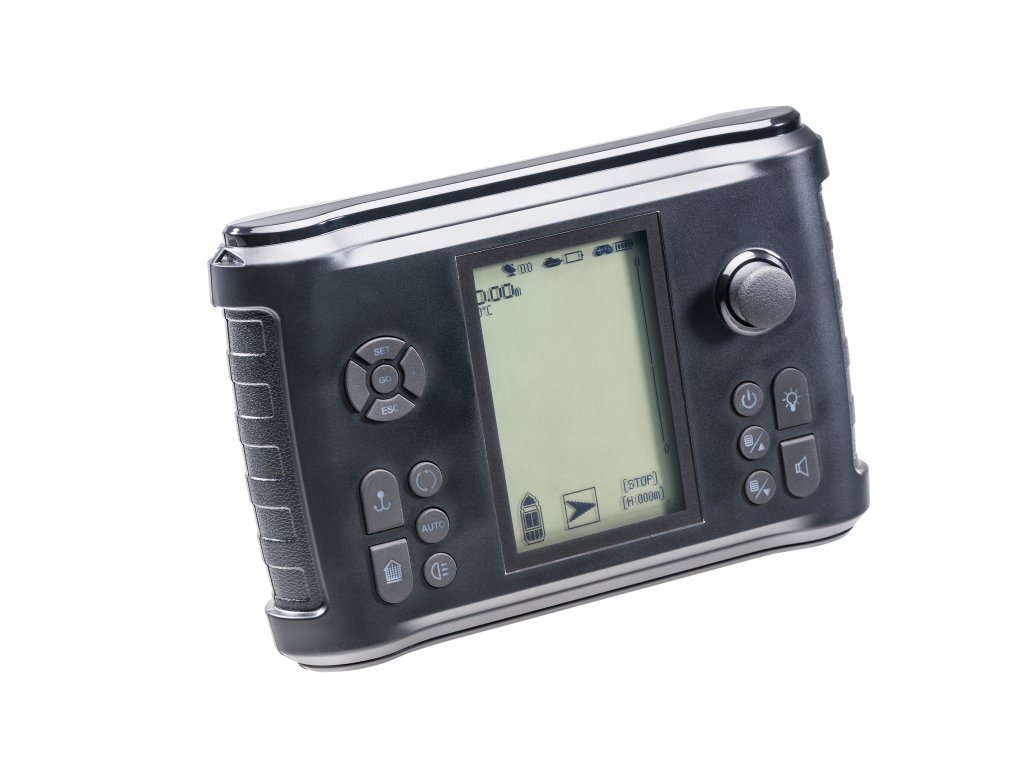 - Zabudovaný echolot, zobrazující informace o reliéfu dna, teplotě vody a výskytu ryb na displeji ovladače