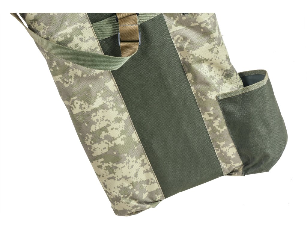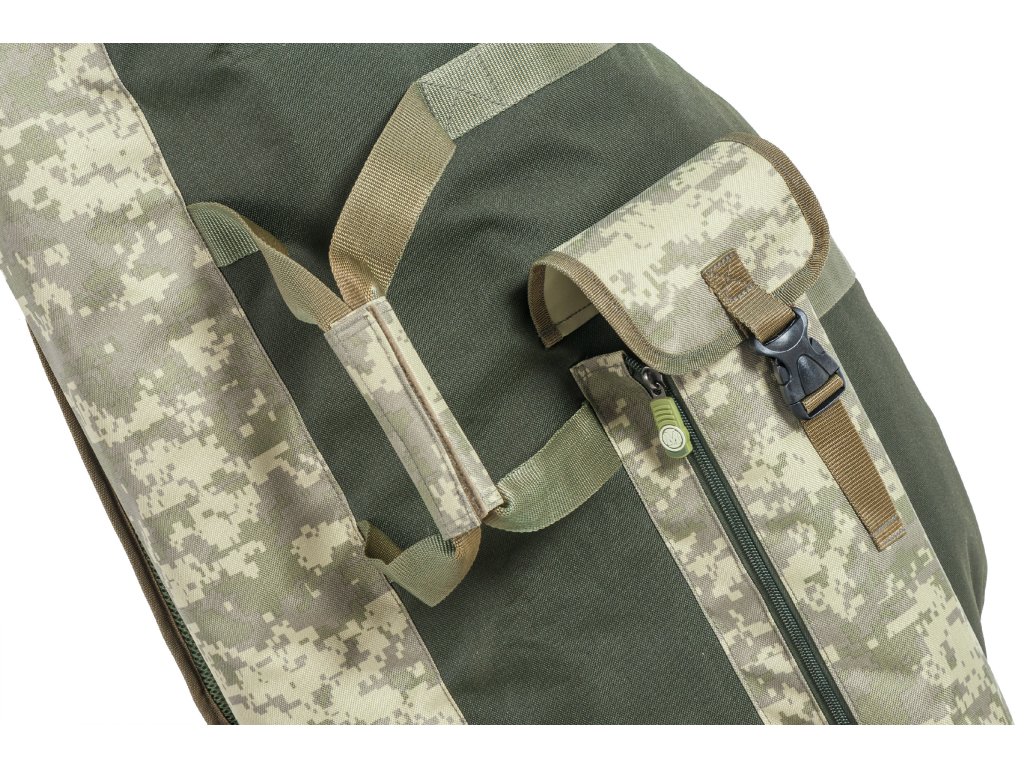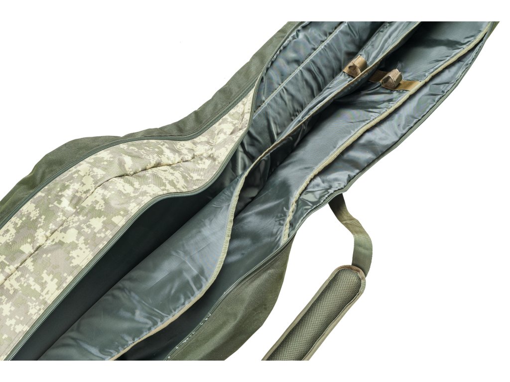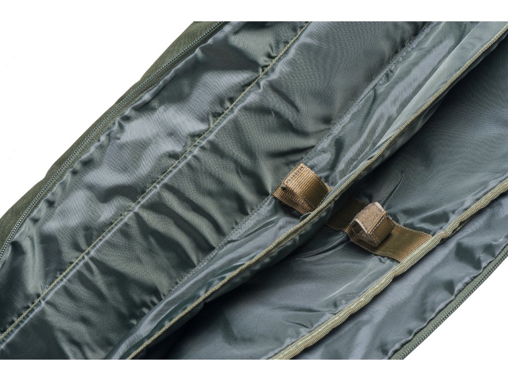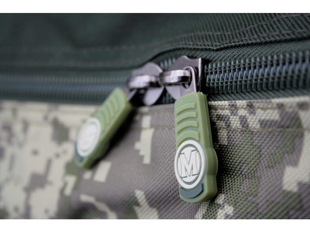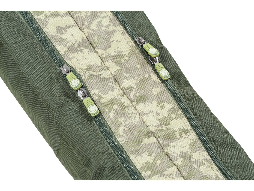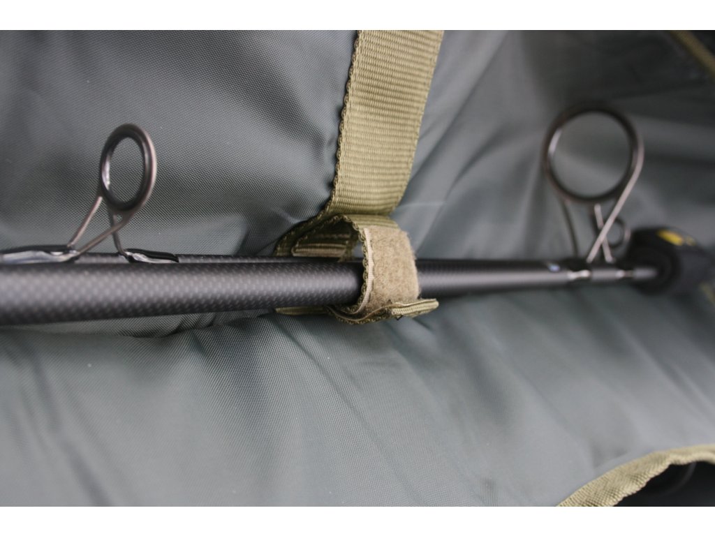 Efektivně řešený obal pro transport dvou až čtyř prutů s navijáky. Dvě polstrované komory s vnitřními přepážkami zajišťují ochranu pro pruty s namontovanými navijáky. Boční kapsy jsou navrženy pro transport vidliček, podběráku, deštníku a dalšího příslušenství. Obal je vyroben z odolného, nepromokavého a snadno omyvatelného materiálu B-POL600D v designu série CamoCODE.Rozměry kapes a popruhů: