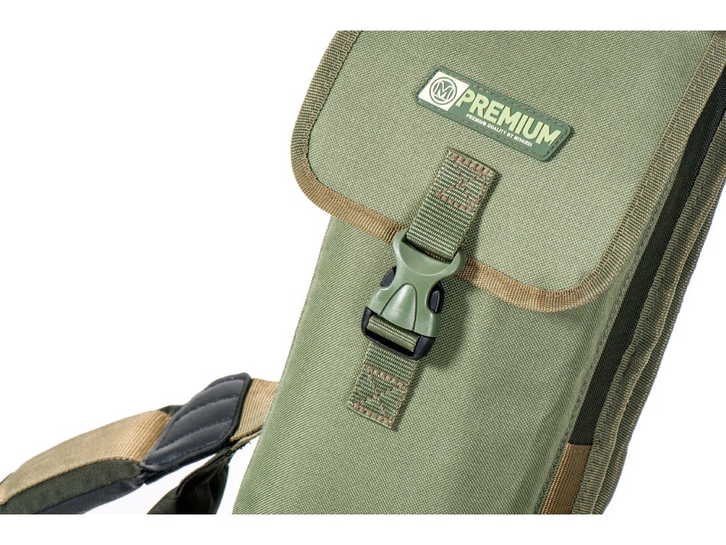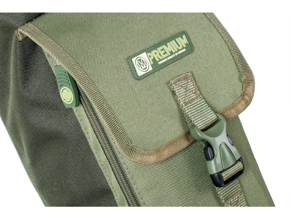 Kvalitně navržená série obalů na trojdílné nebo dvojdílné kaprové pruty s kompletním polstrováním, vyrobená z pevného a nepromokavého materiálu B-POL600D. Obal je vybaven přepravními uchy i polstrovaným ramenním popruhem, prostornými kapsami na deštník, vidličky a další příslušenství. Je osazen desénovými táhly zipů MIVARDI.215 - pouzdro pro dvoudílné pruty délky 3,90m.
