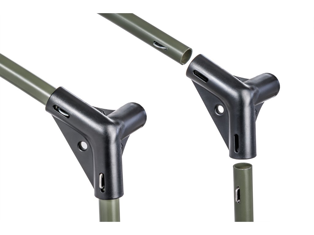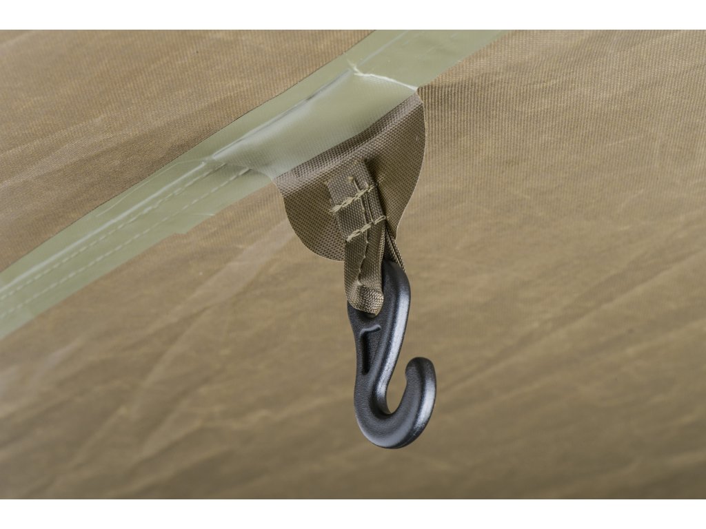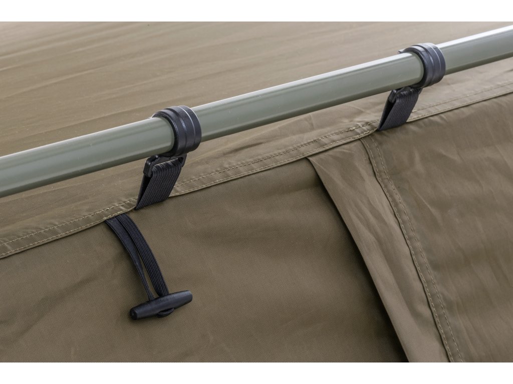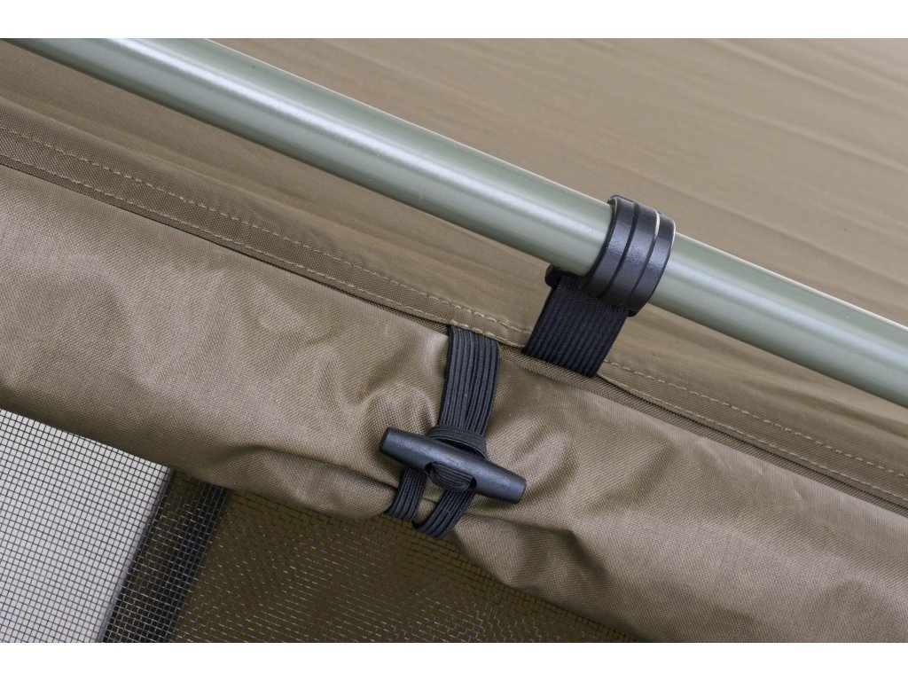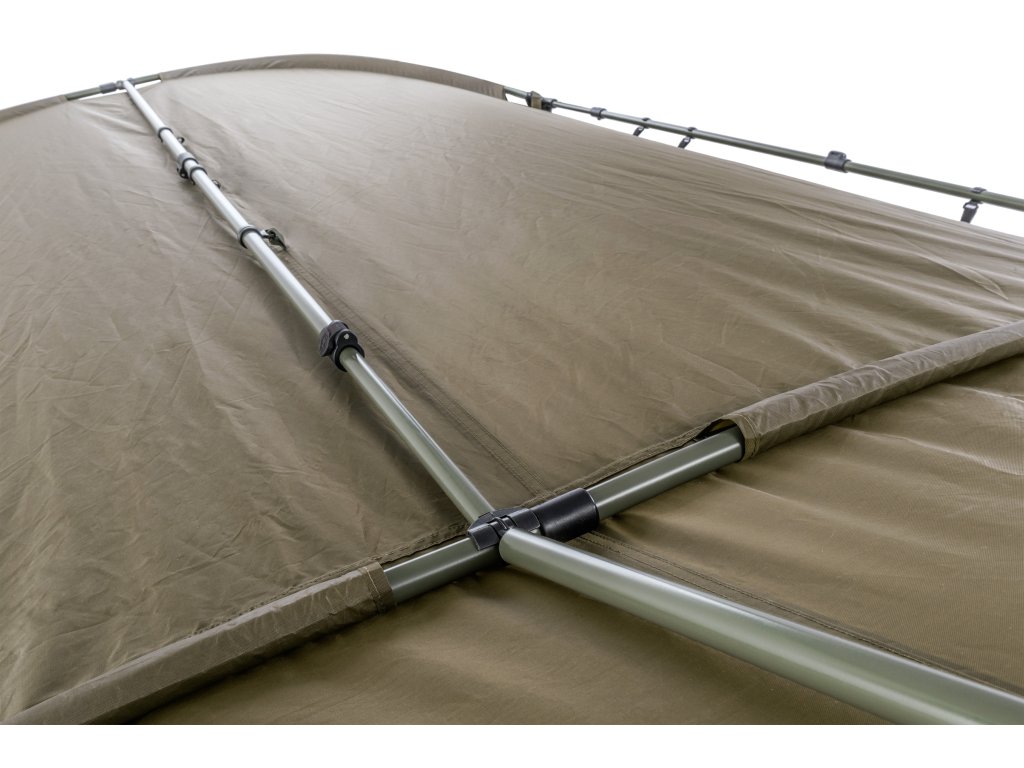 Upravená a vylepšená verze prostorného multifunkčního přístřešku, který se stal absolutním bestsellerem nejen v České republice. Zcela přepracována je nosná konstrukce za použití trojcestných spojek mezi střešním žebrem, svislou stojnou a boční rozpěrnou tyčí. Trubky rámu jsou opatřeny pružinovými západkami, které pevně fixují jednotlivé části rámu ve spojce a výrazně usnadňují rozložení a složení přístřešku. Ve spojkách jsou zároveň otvory pro uvázání kotvících šňůr pro případ použití přístřešku ve velmi silném větru. Nové unikátní řešení střešní rozpěrné tyče a bočních rozpěrných tyčí výrazně snižuje jejich průhyb a zvyšuje jejich tuhost i nosnost. Zároveň umožňuje jejich složení na kratší transportní délku. Aretační zámky teleskopických výsuvů Mivardi s extrémní přítlačnou silou spolehlivě fixují rozpěrné tyče i při maximálním vytažení. Pro použití v extrémních podmínkách je jako příslušenství dostupná doplňková sada bočních rozpěrných tyčí. Přístřešek je připraven pro zavěšení dvou velkých, síťových organizérů s praktickými kapsami (dostupné jako příslušenství). Boční stěny a jejich fixace na nosné konstrukci jsou upraveny tak, aby bez problému unesly tyto rozměrné organizéry, naplněné až třemi kilogramy zátěže. Úprava fixace bočních stěn přispívá i k výrazně lepšímu napnutí potahu přístřešku. Příjemným vylepšením je i výrazně zvětšené zadní okno. Dalším zajímavým příslušenstvím je i samostatně dodávaný multifunkční držák prutů a podběráků, určený k nasazení na boční rozpěrnou tyč. K přístřešku je dostupný i samostatně dodávaný plnohodnotný zimní přehoz.Doplňkové parametry