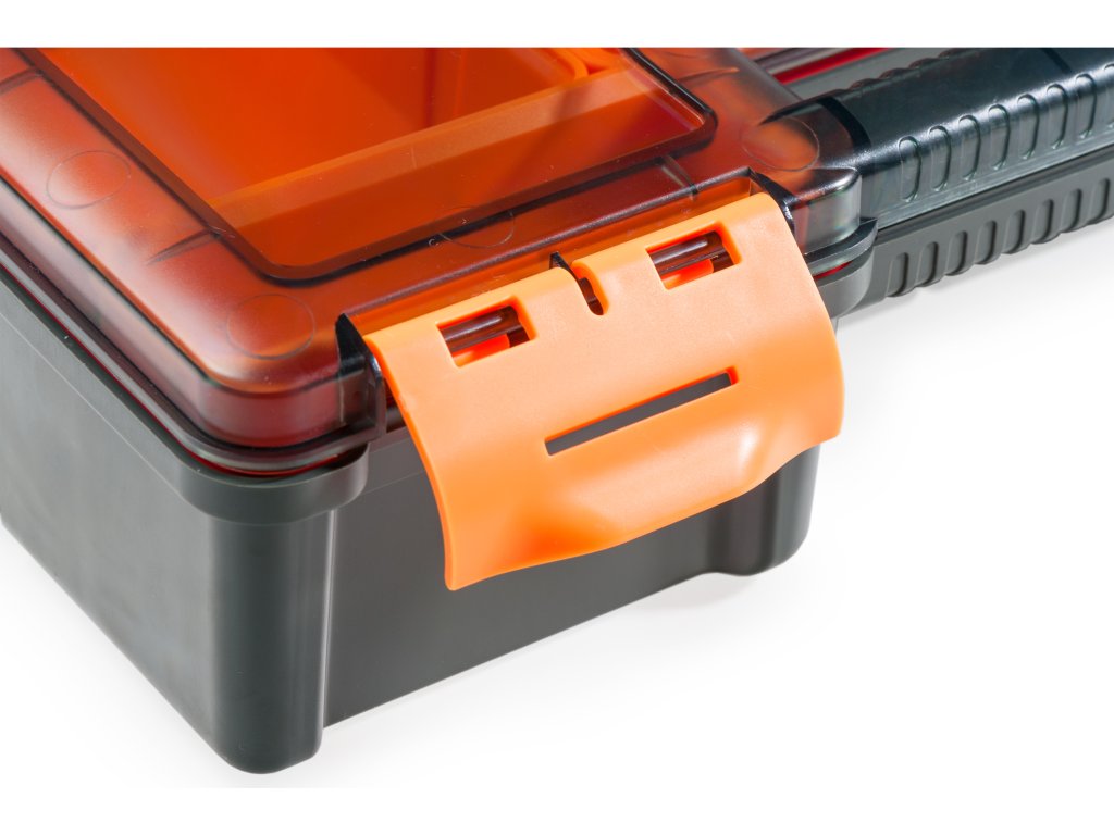 Multifunkční box na návazce, návazcový materiál, krmítka a další příslušenství, které potřebujete mít při lovu na feeder vždy při ruce. Robustní konstrukce odolá nárazům i náhodným pádům. Skrz transparentní víko budete mít vždy přehled o obsahu vyjímatelných schránek uvnitř boxu. Po zavření pomocí robustních zámků můžete box snadno přenášet jako kufřík. Těsnění po obvodu brání vniknutí vody dovnitř boxu, pokud jej zapomenete na dešti nebo vám náhodou upadne do vody.Rozměry boxů:
