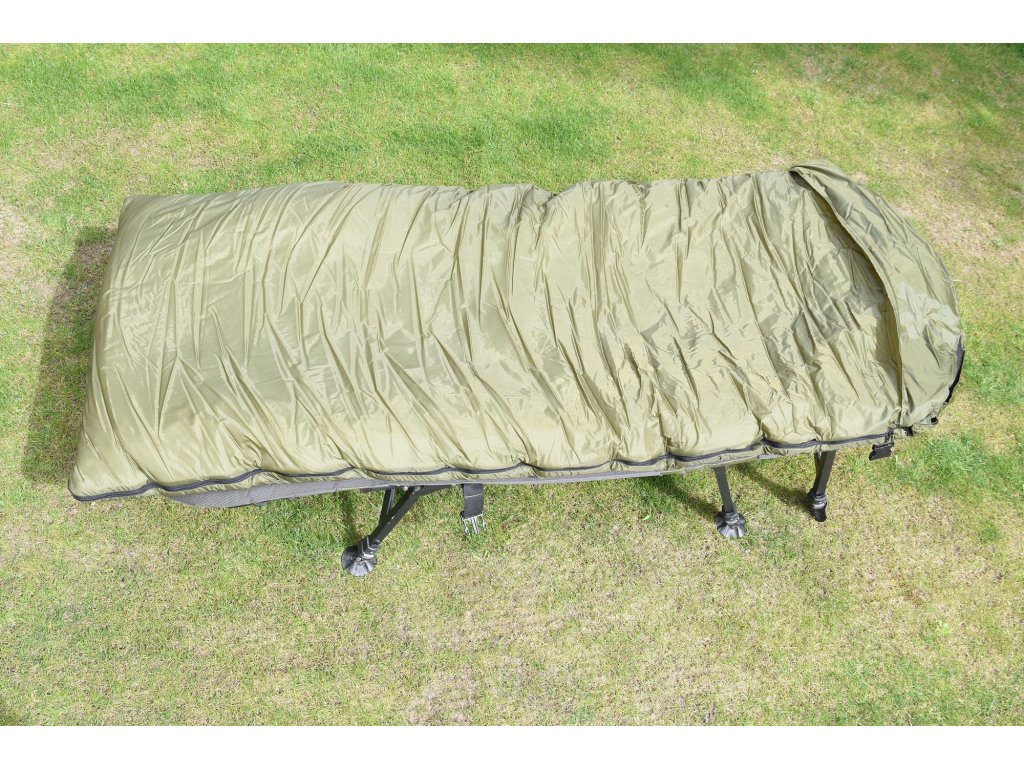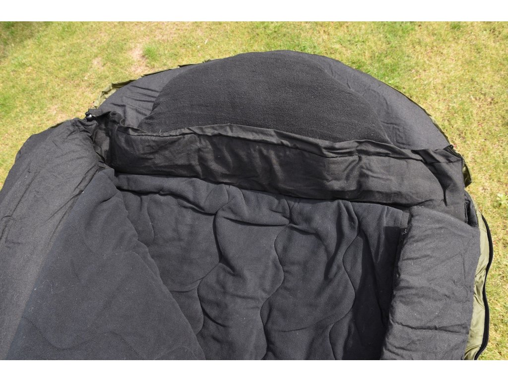 Spacák Fatty Boy (5 season) je nepochybně nejteplejší rybářský spacák, jaký můžete kde sehnat. Má plnění 800g/m dutého vlákna + odepínací fleecovou termo vložku, což dodává komfort i ve velmi chladných dnech. V teplém období naopak působí jako termoska, drží vaši teplotu. Nemusíte tak mít obavu, že byste se v létě ve spacáku potili. Co víc, fleecová odepínací vložka sama o sobě může být použita jako lehčí letní spacák, nebo ji při chladnějších večerech použijete na záda jako deku. Součástí balení je samostatný obal na tuto termovložku, tj můžete ji mít zvlášť nebo ji v určitých obdobích s sebou nenosit, čím se výrazně zmenší objem spacáku. Další vychytávkou je unikátní otočný polštář, který umožňuje dát zip spacáku na libovolnou stranu. Vždy tak budete mít zip tím směrem, kterým potřebujete. Kvalitní rychlozipy, těsnící léga, stahovací límec, oboustranné návleky na lehátko jsou samozřejmostí. Rozměry spacáku jsou 230 (200 po ramena) x 90cm. Na vrchu je vodoodpudivý olivově zelený materiál, uvnitř podšívka z bavlny a fleecová termovložka. Hlavní obal spacáku je větší, tak abyste do něj spacák snadno dostali a při skladování přes zimu nebyly dutá vlákna tak stlačená, což zvyšuje jejich životnost. Dá se ale kompresně stáhnout na menší rozměr.