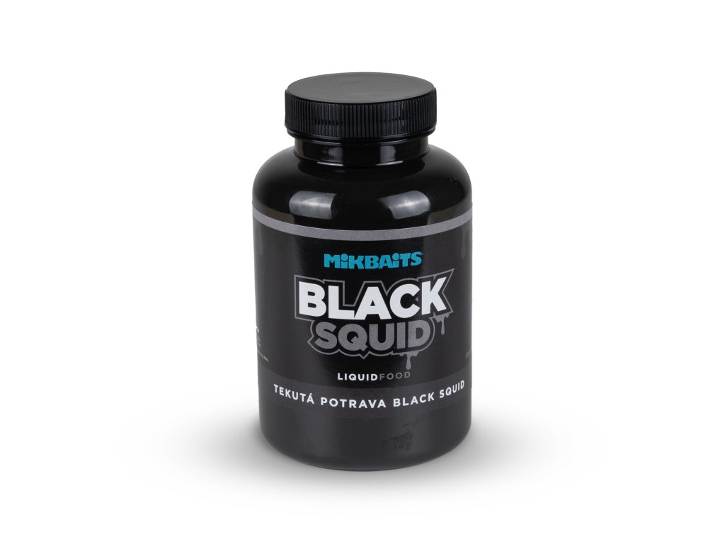 Black Squid je tekutá potrava vyráběná z olihní. Je vysoce rozpustná a nesmírně atraktivní při všech teplotách vody. Vše obarví do černa, což v mnoha situacích zvyšuje její účinnost. Lze použít jako přísadu při výrobě boilie, k jeho dipování nebo na polévání partiklu, boilie, pelet a jiných návnad. Nerozpouští PVA. DD 20-40ml/kg.